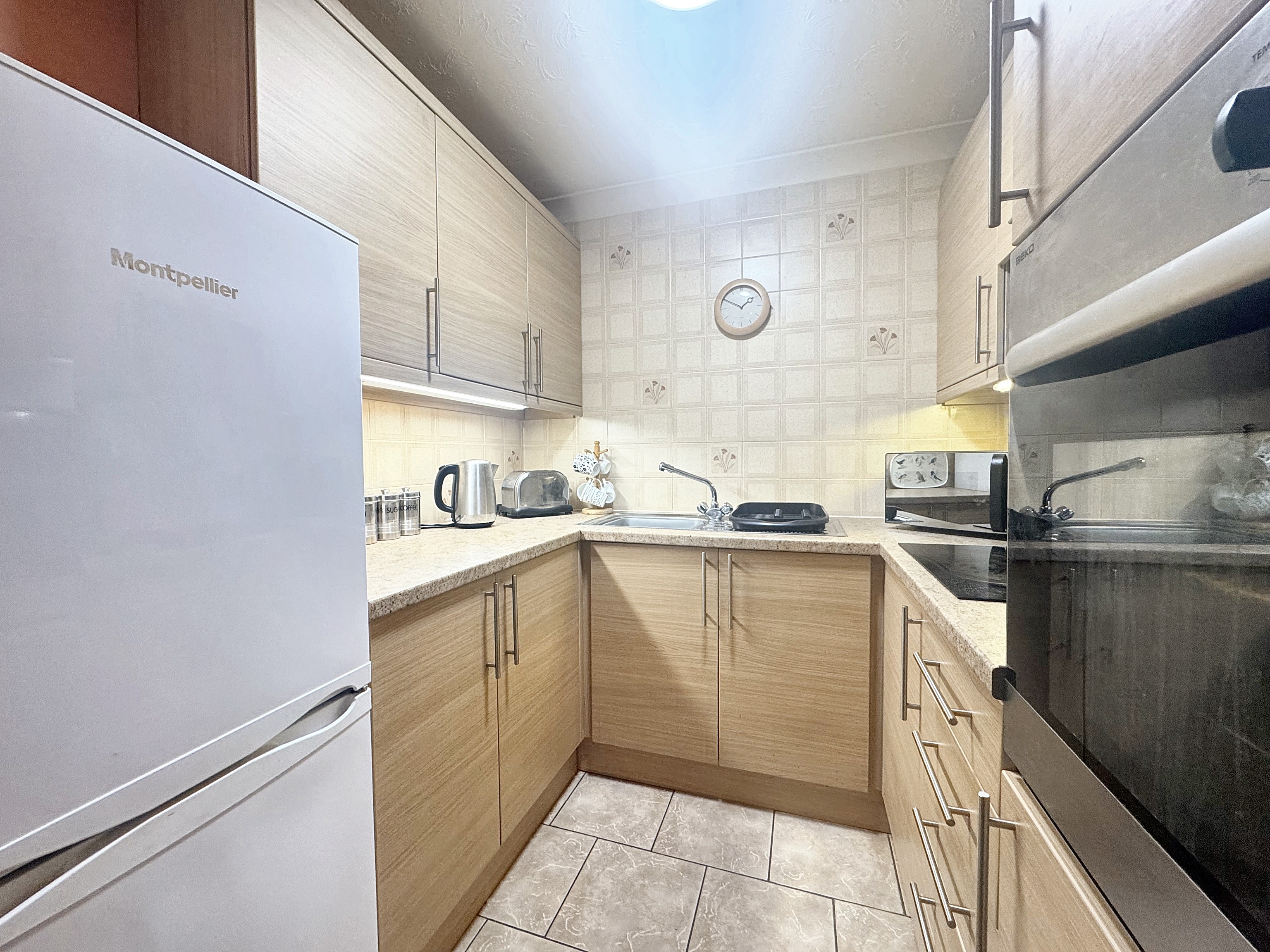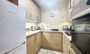 The one bedroom apartment offers a tranquil retreat, with views of the rear gardens, providing a comfortable space. The apartment also features a bathroom, living room and compact kitchen.