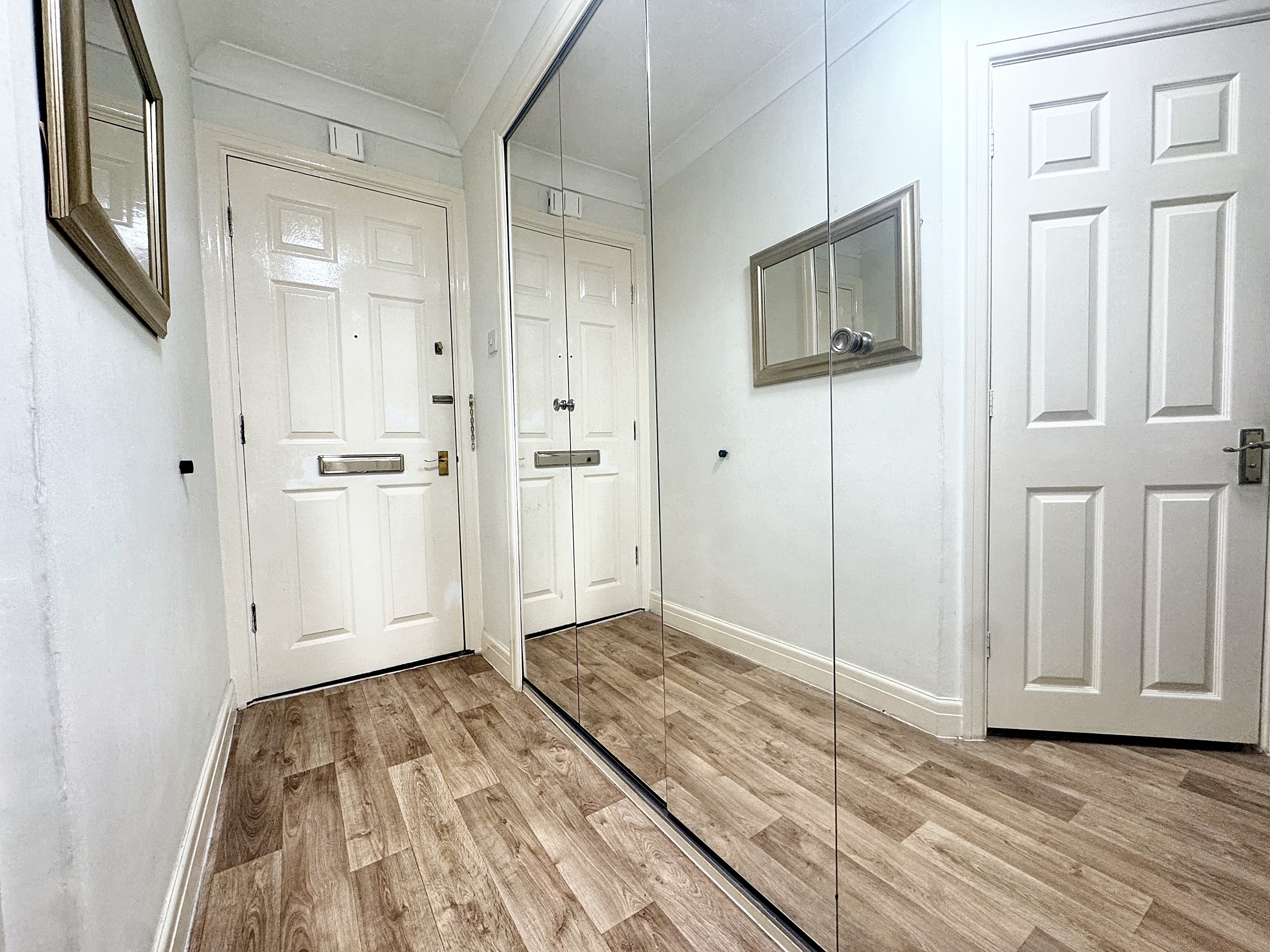 Entrance hallway with mirrored door storage cupboards to one side. Internal doors lead through to: