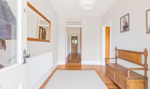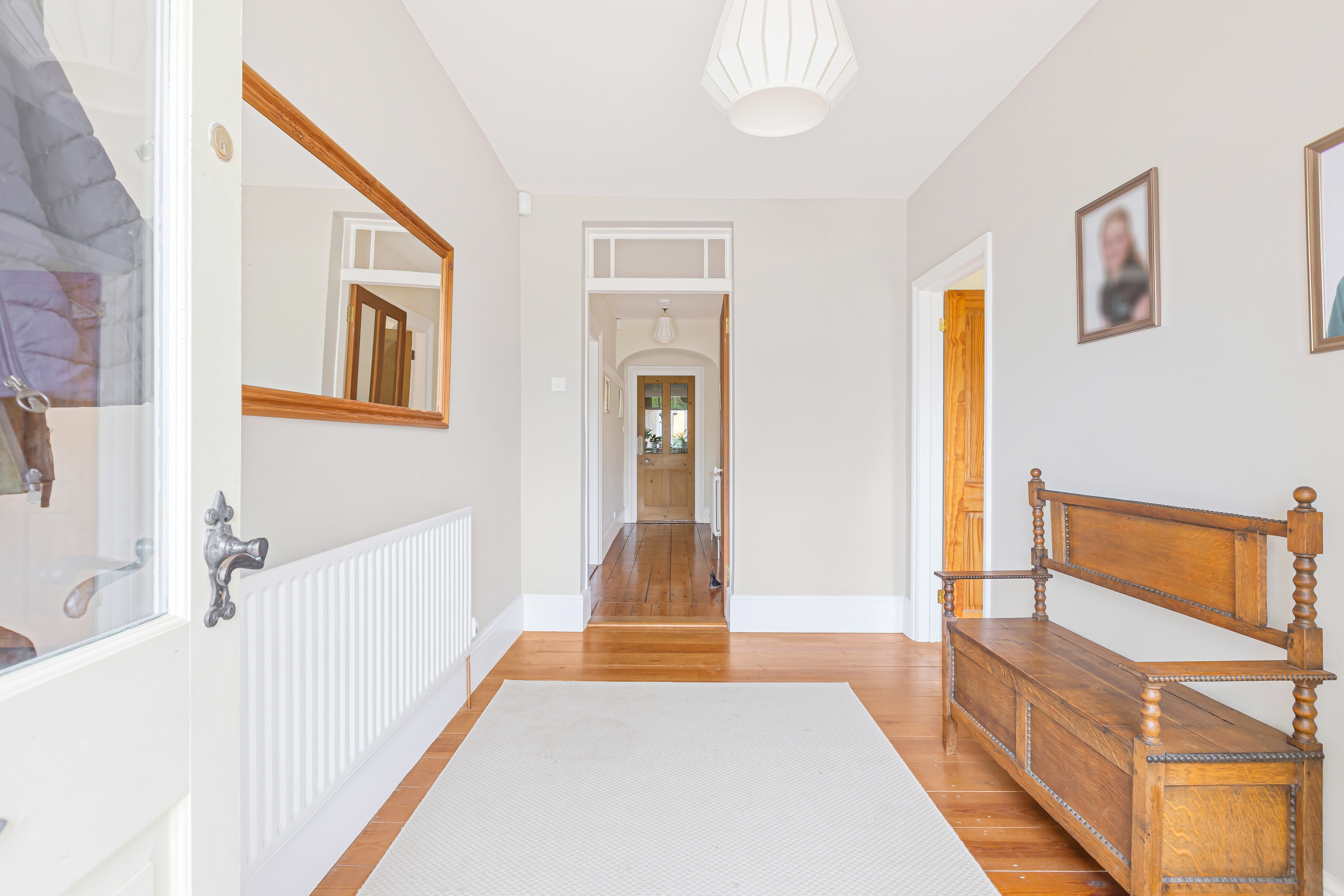 This incredibly spacious former farmhouse enjoys excellent kerb appeal, set down a private driveway with a generous frontage, well-maintained front gardens, planters of flowers and shrubs, mature trees, views over open farmland, and lots of off-road parking for both the main house and annexe. Upon stepping inside the main house, the entrance hallway is incredibly spacious and welcoming, with room for furniture, space for coats and shoes, attractive wood flooring, neutral decor, pendant lighting, stairs to the first floor, and access through to the entire downstairs living space, including a large office and a snug, offering flexible usage as a music room, playroom or additional office space if needed.