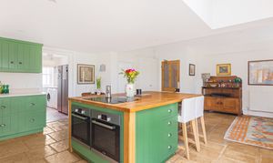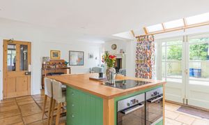 The kitchen/breakfast/family room is truly the heart of this lovely home, enjoying windows and double French doors to a side garden aspect, vaulted ceilings, tiled flooring, a stunning feature fireplace and wood-burning stove, and space for seating and storage furniture. In the kitchen area, there are a range of base and wall units, composite worktops, a large island/breakfast bar with wood worktops, inset lighting, a butler sink, integrated ovens, a hob and dishwasher, and space for other small kitchen appliances. The utility room provides further storage, space for an American fridge/freezer and large laundry appliances and access to the downstairs shower room, boot room and rear garden.