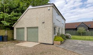 Outside, the detached double garage is set over two floors, which incorporates an integral double garage. On the ground floor, there is an office and a hall area with stairs to the first floor. On the first floor, this vast space could be refitted to create self-contained living accommodation, office space or playrooms if desired.