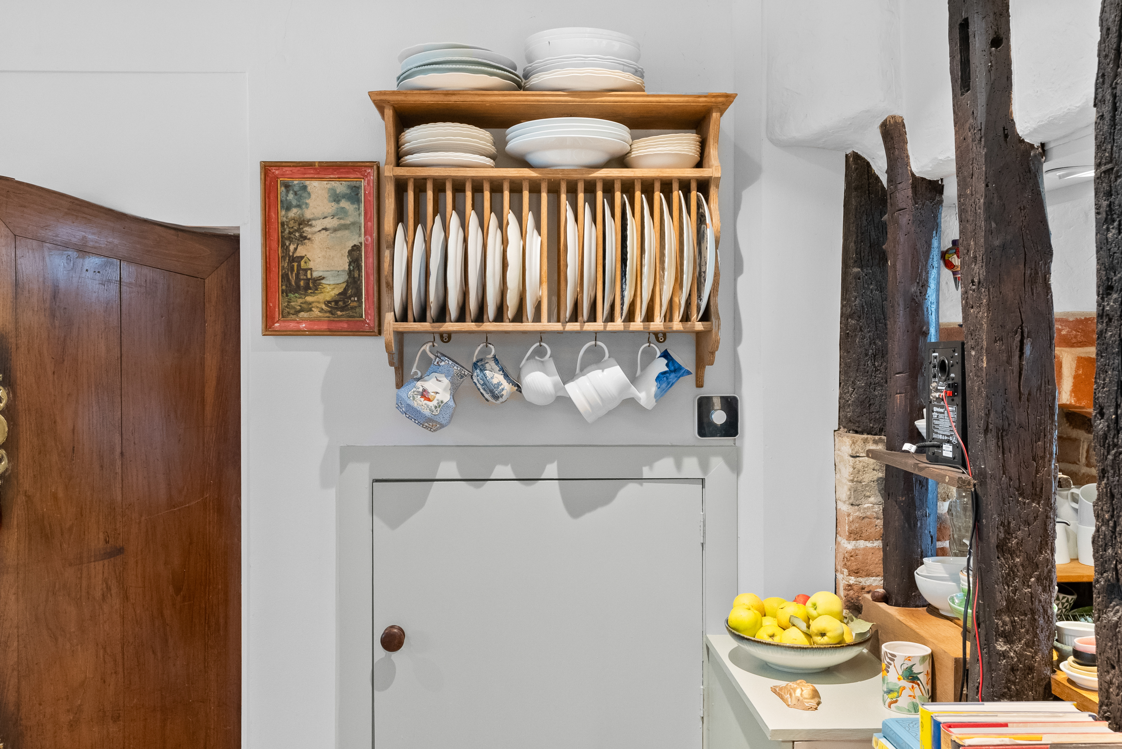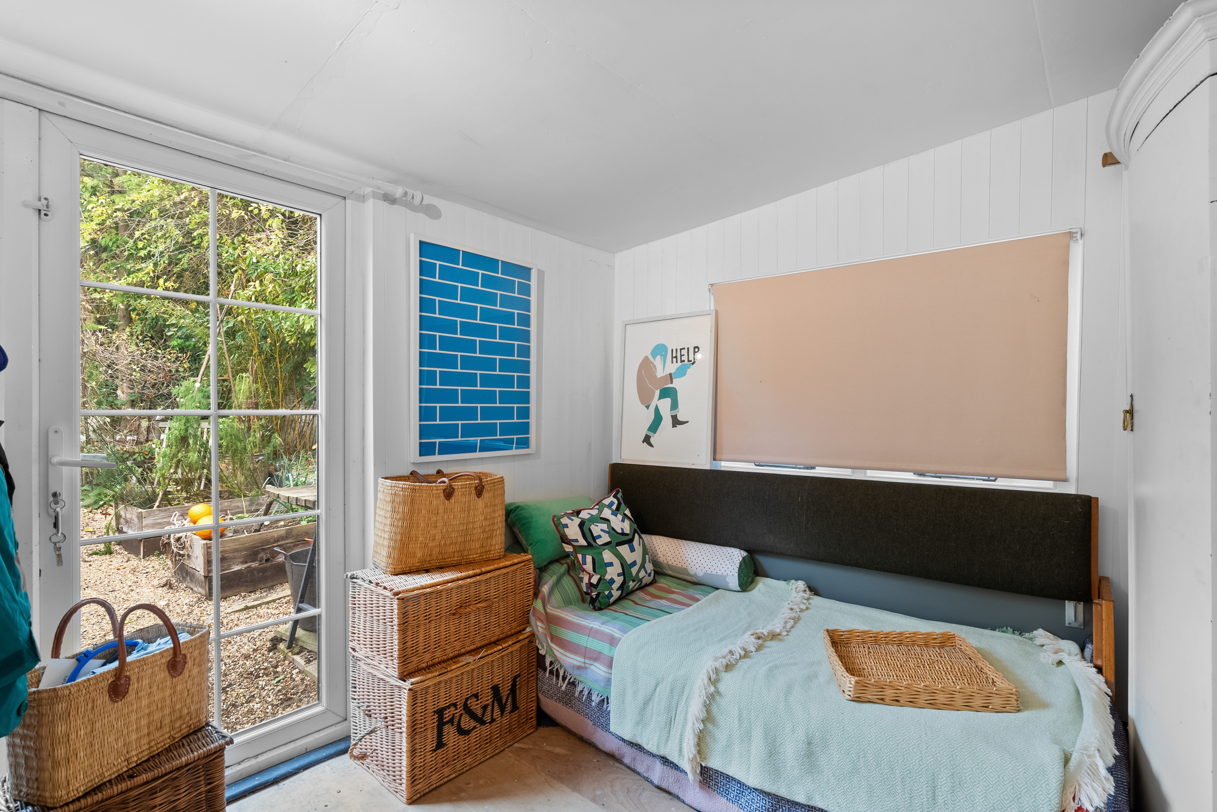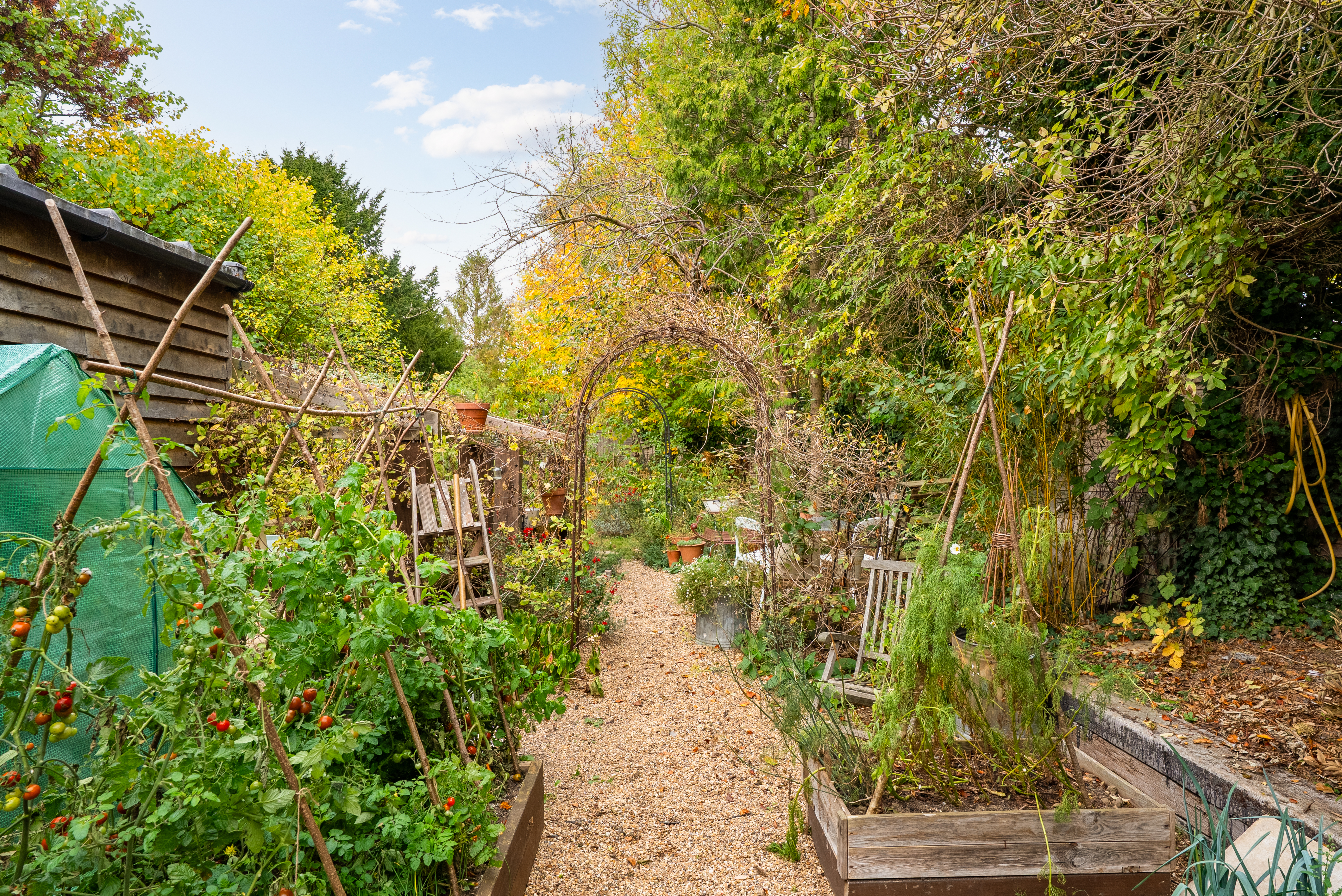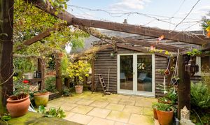 Outside, the property enjoys both front and rear gardens. The front features a charming wildflower garden enclosed by a picket fence and a private driveway providing off-road parking. The enclosed rear garden is mainly laid to lawn with mature trees, several fruit tree specimens and a cottage garden with spaces to sit and relax. There is also a separate vegetable garden with raised beds, and a gravel garden. Sheds and a workshop (which has power and water) offer additional storage. A large patio area offers the perfect spot for al fresco dining and entertaining while enjoying the peaceful surroundings.