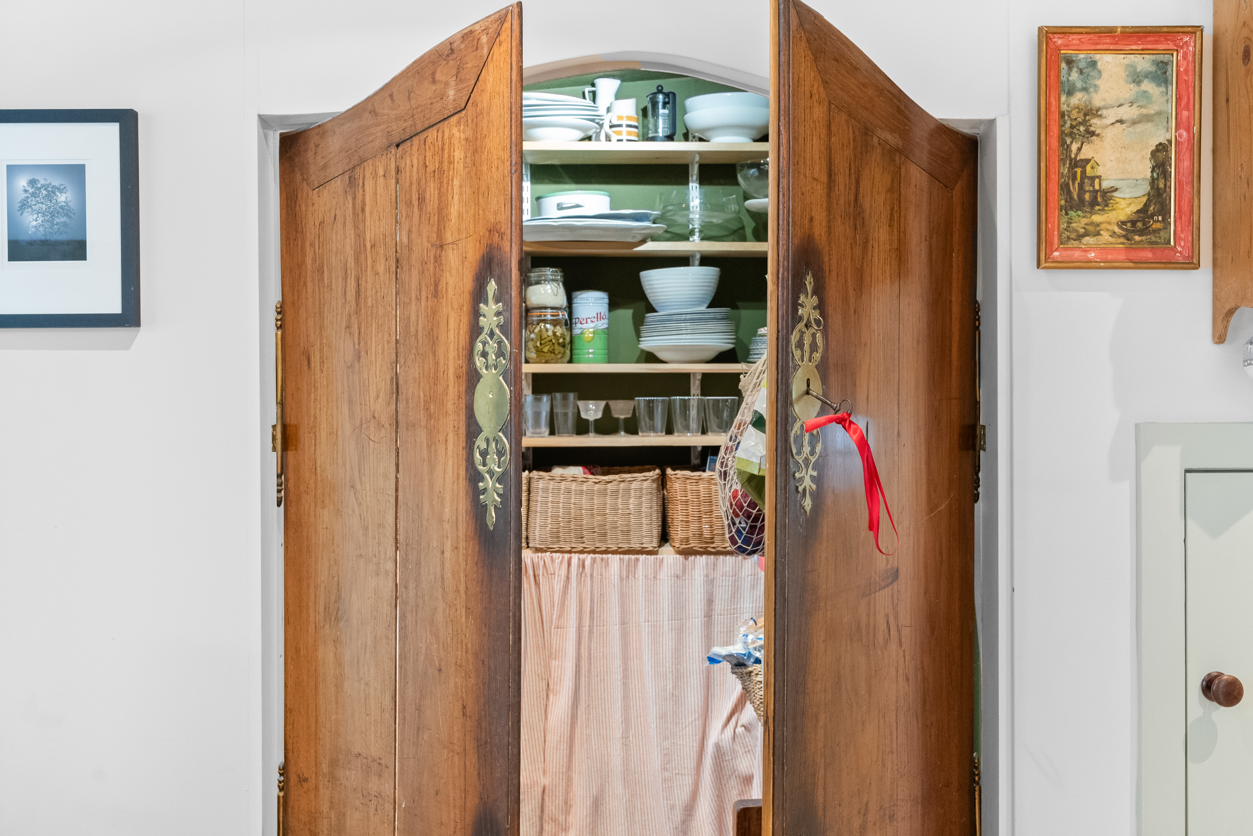 Inside, the accommodation is arranged over two floors. It has a country-style kitchen, fitted with base storage units, a butler sink, feature stove set into an inglenook fireplace and large pantry, opening into the spacious living and dining area — a later addition that beautifully complements the original home while providing a generous open-plan space ideal for family gatherings.