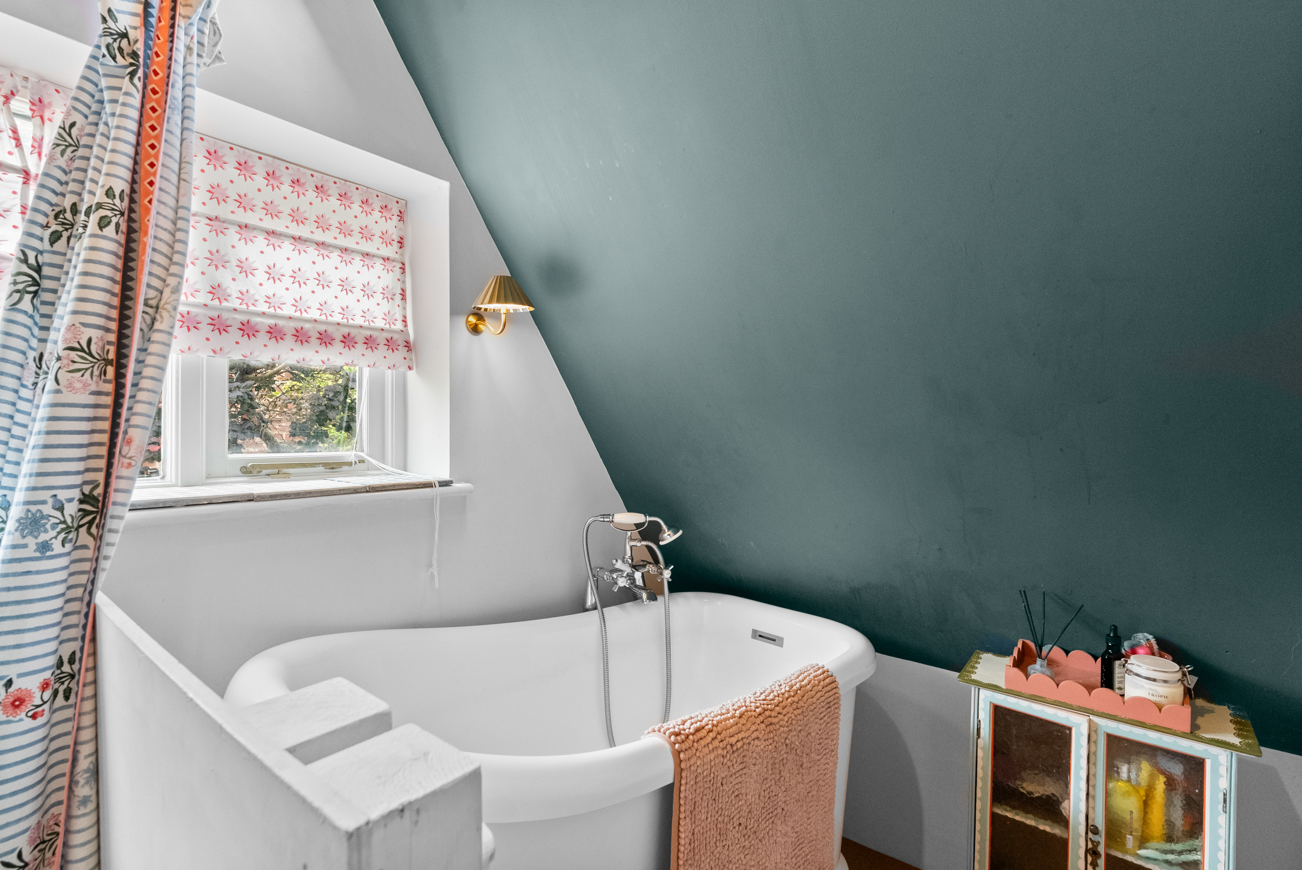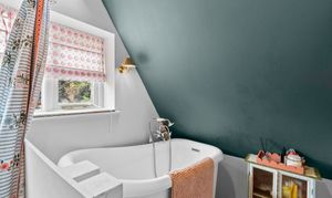 The first floor offers two double bedrooms arranged in a Jack and Jill style, with one of the bedrooms having its own dressing room (which could easily be converted into a fifth bedroom if desired). Each bedroom benefits from its own staircase access, offering privacy and space. There is also a freestanding bath that serves the upper floor.