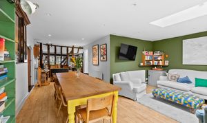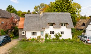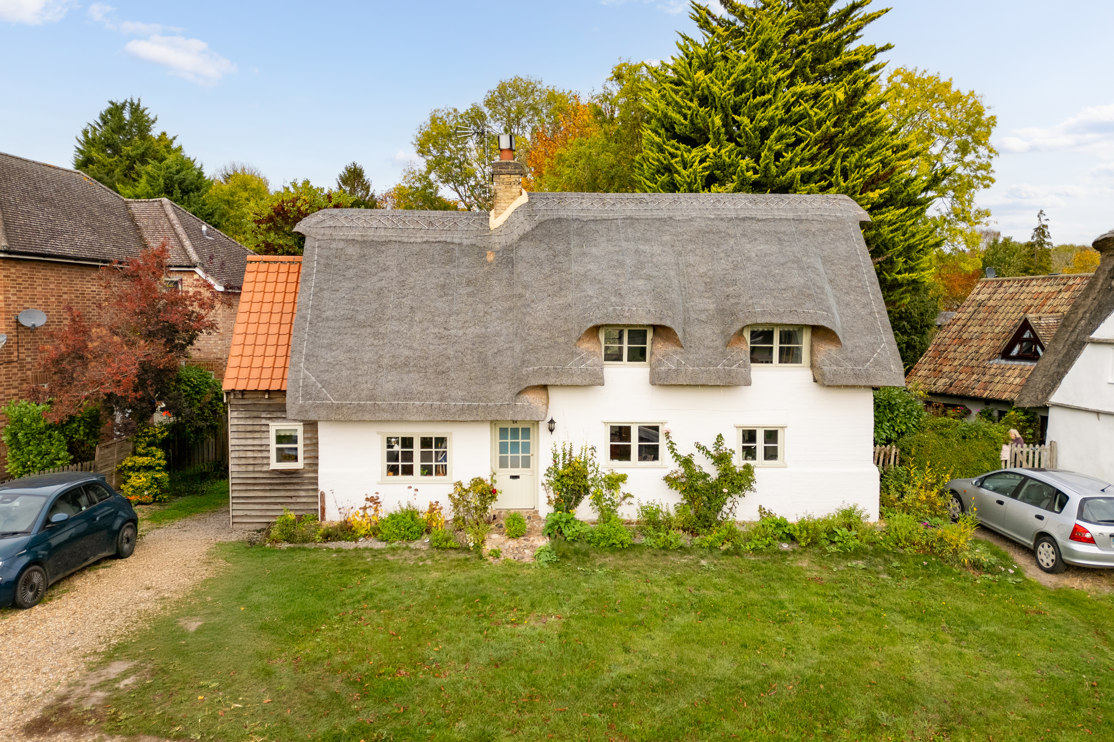 This delightful extended Grade II Listed four/ five-bedroom thatched cottage sits proudly overlooking the village green at the heart of this charming community. Rich in character and full of period features, the home offers a blend of traditional elegance and modern family living, all within walking distance of the village’s amenities and excellent transport links to Cambridge and London via both road and rail. Set back from the road, the cottage enjoys a lovely sense of privacy and tranquillity, framed by its thatched roof and picturesque frontage.
