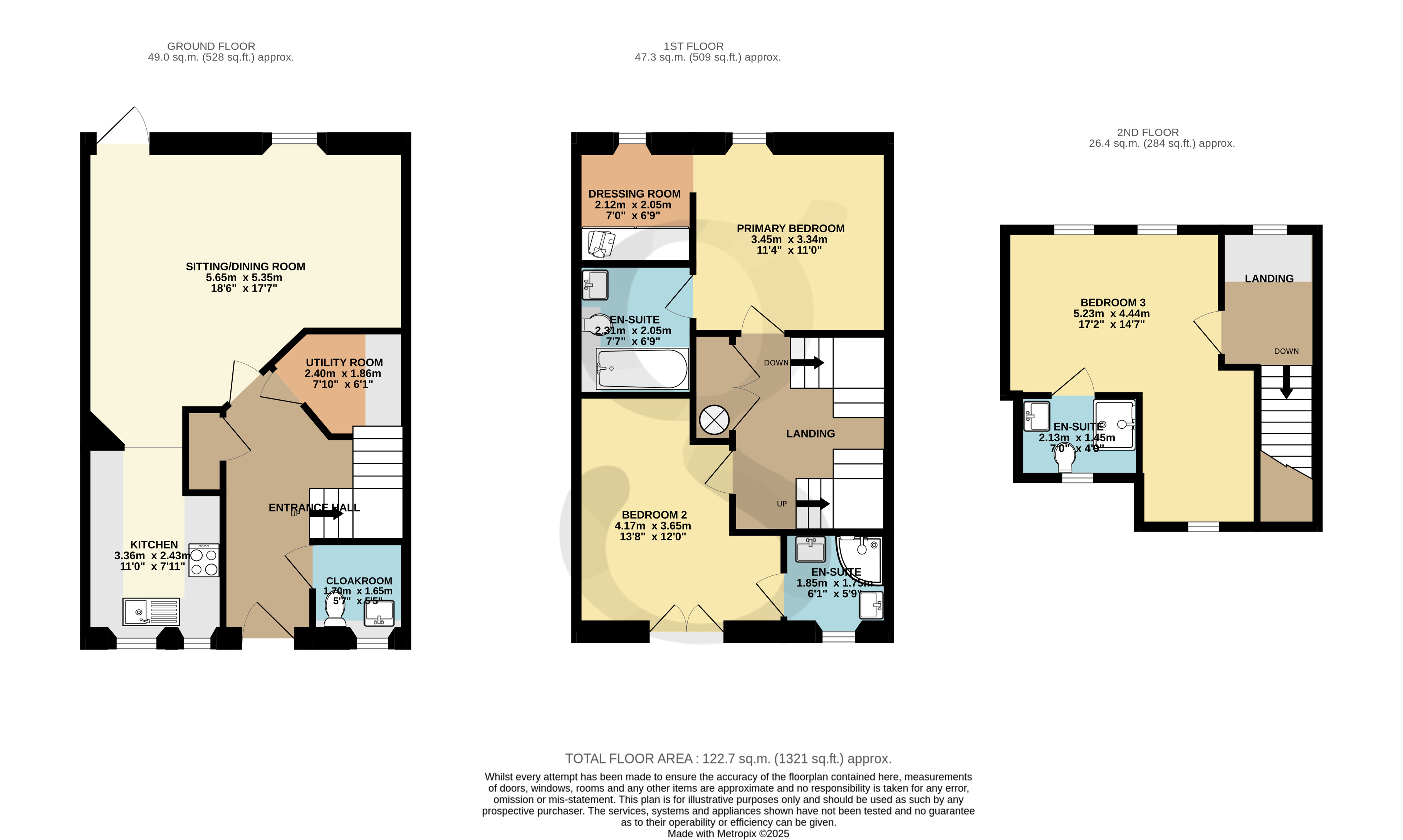Nestled within a sought-after development, this meticulously presented 3-bedroom house exudes elegance and charm. The property boasts three spacious double bedrooms, complemented by three stylish bathrooms and a convenient downstairs WC. The heart of the home lies in the expansive open plan kitchen, dining, and living room, perfect for both relaxing nights in and entertaining guests. The luxurious master bedroom features a coveted dressing room, offering a private sanctuary within the home.