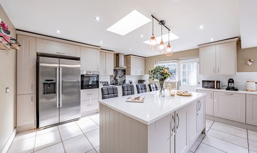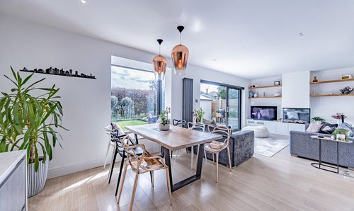 - Open-plan kitchen, dining, and living space with luxury LVT flooring and bay windows