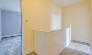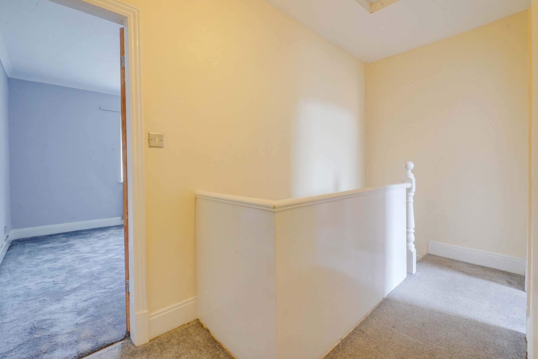 To the first floor, a galleried landing provides access to three bedrooms and a bathroom, with the layout suitable for a range of living arrangements.