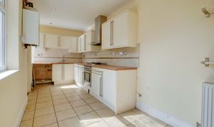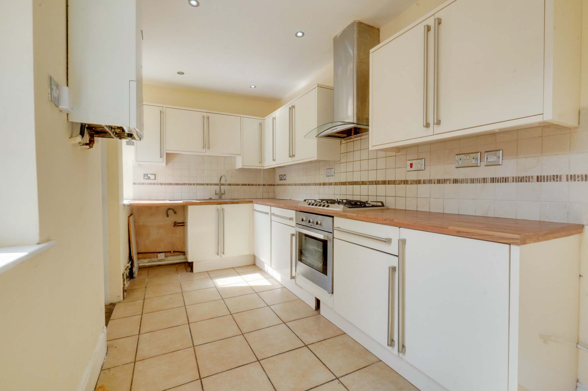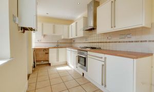 The accommodation is arranged over two floors and includes two reception rooms, offering flexible living and dining space. To the rear, there is a modern style kitchen fitted with a range of units and work surfaces.