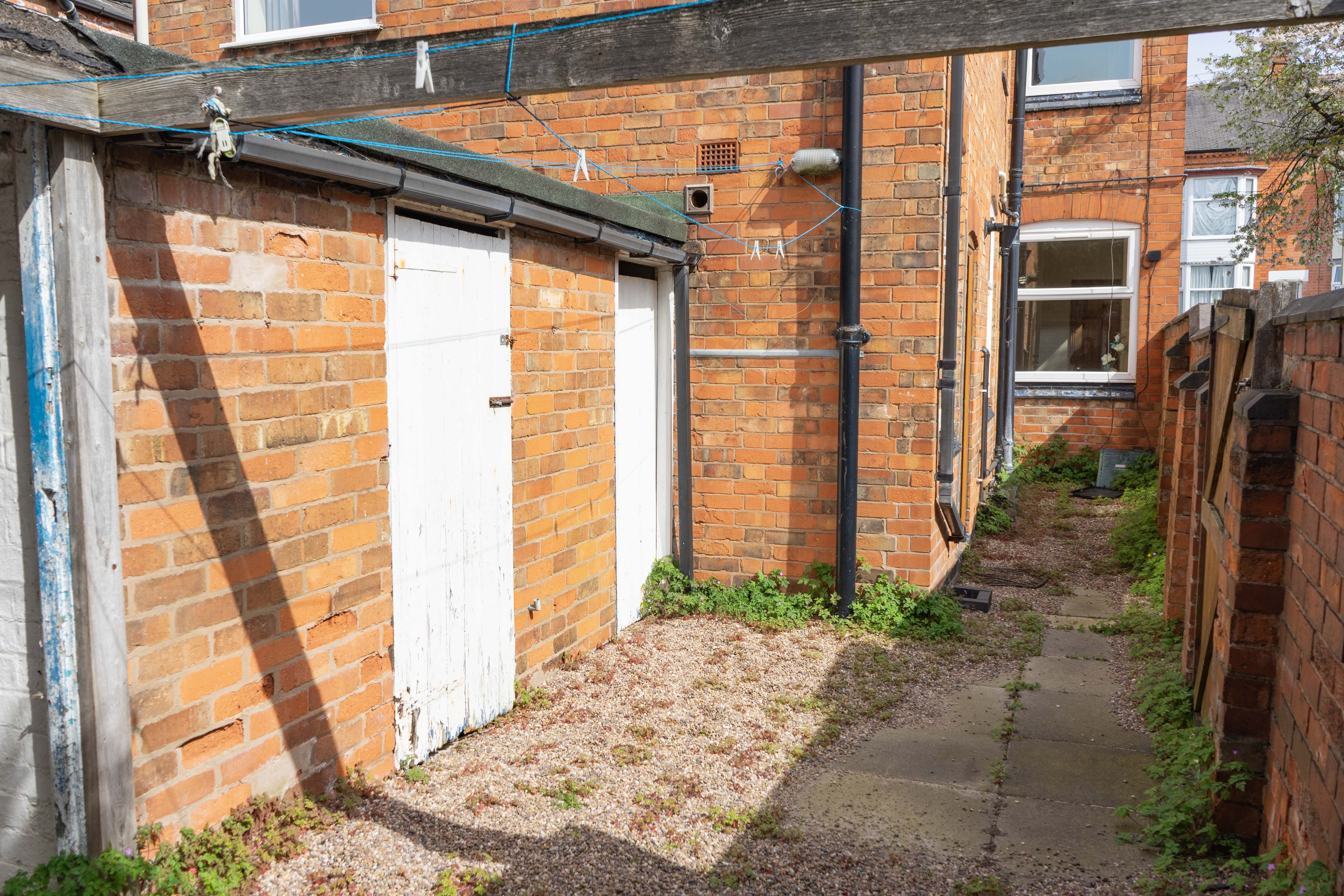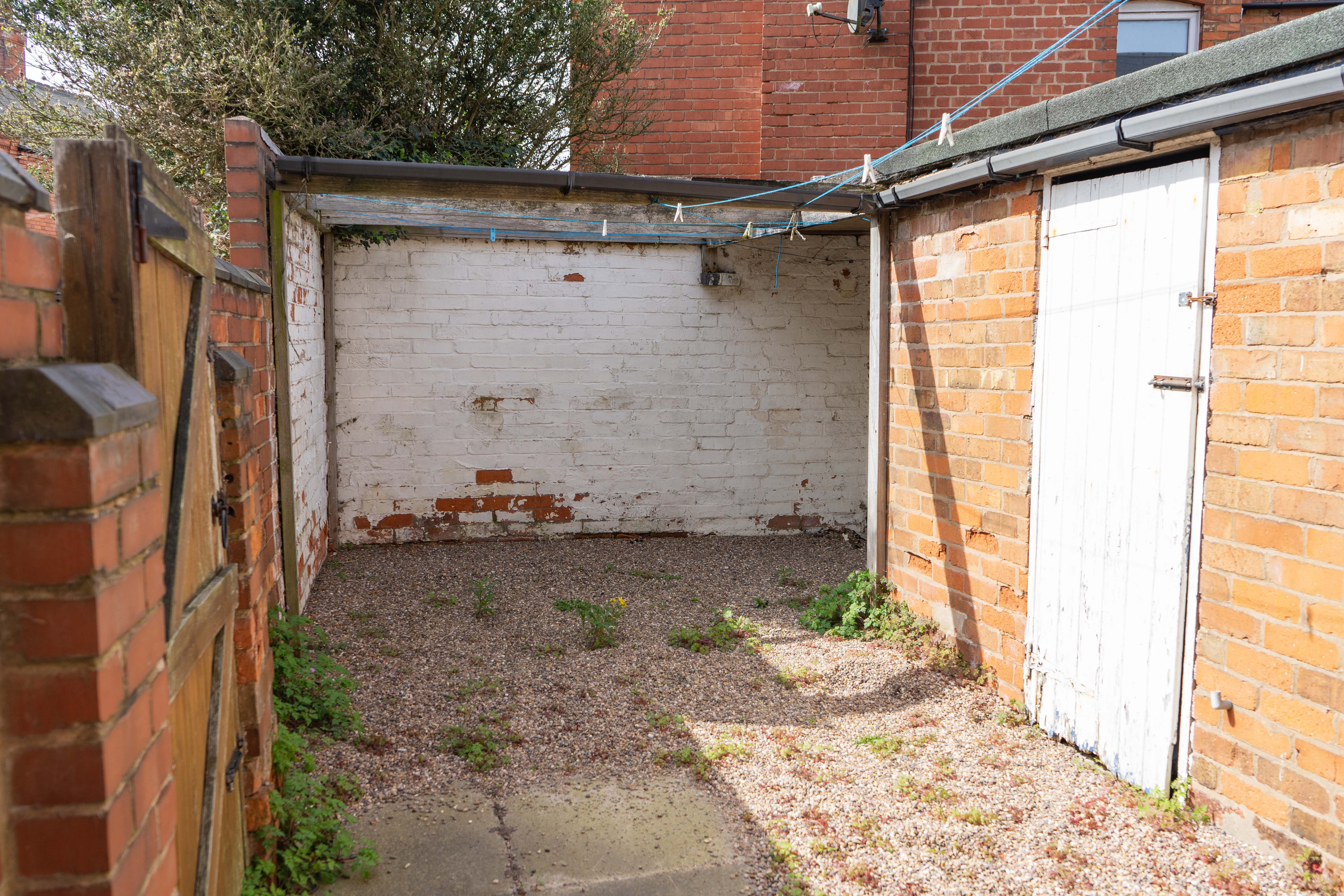 Walled gravelled rear garden with two outside stores, one of with was previously used as an outside WC, gate to side access.