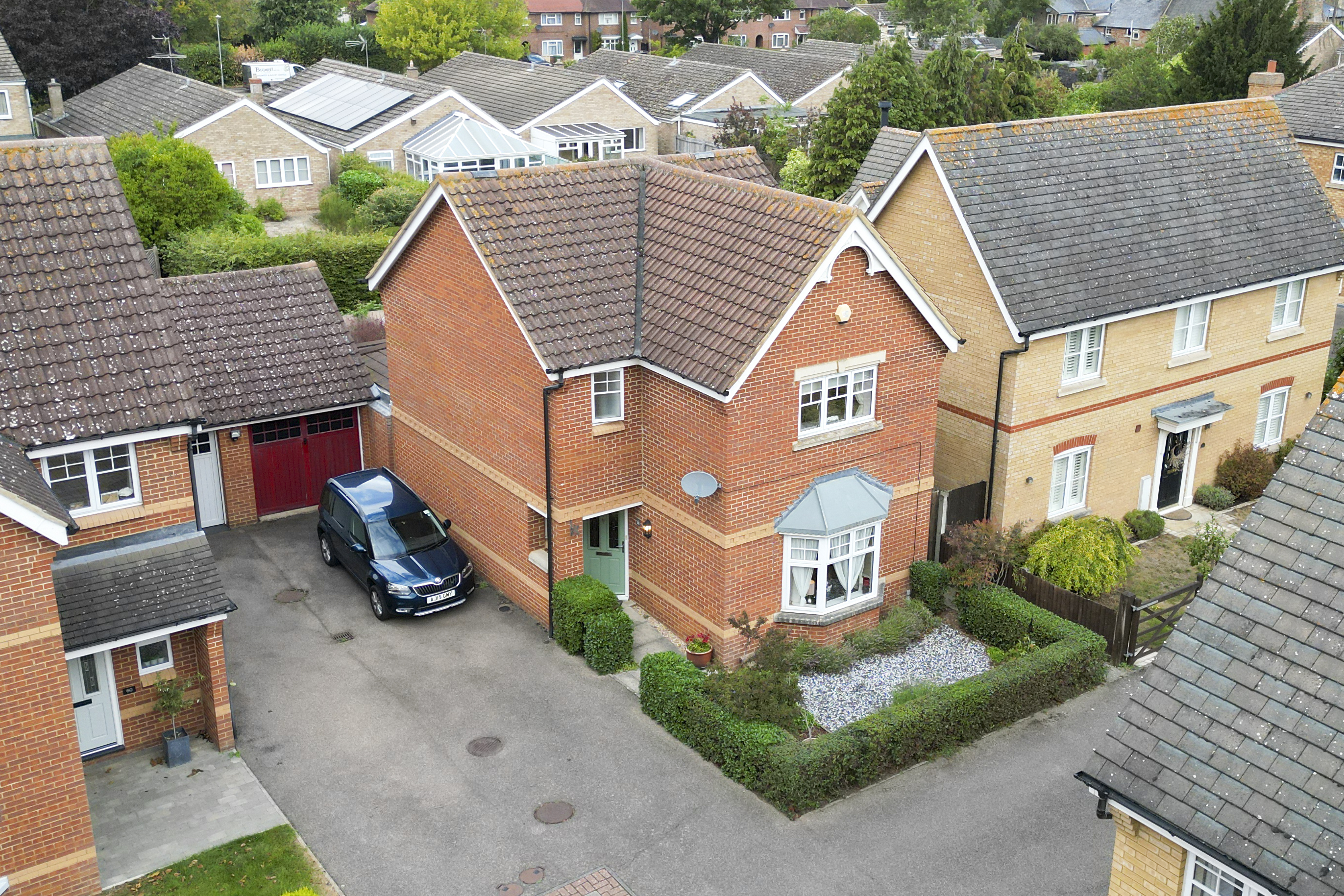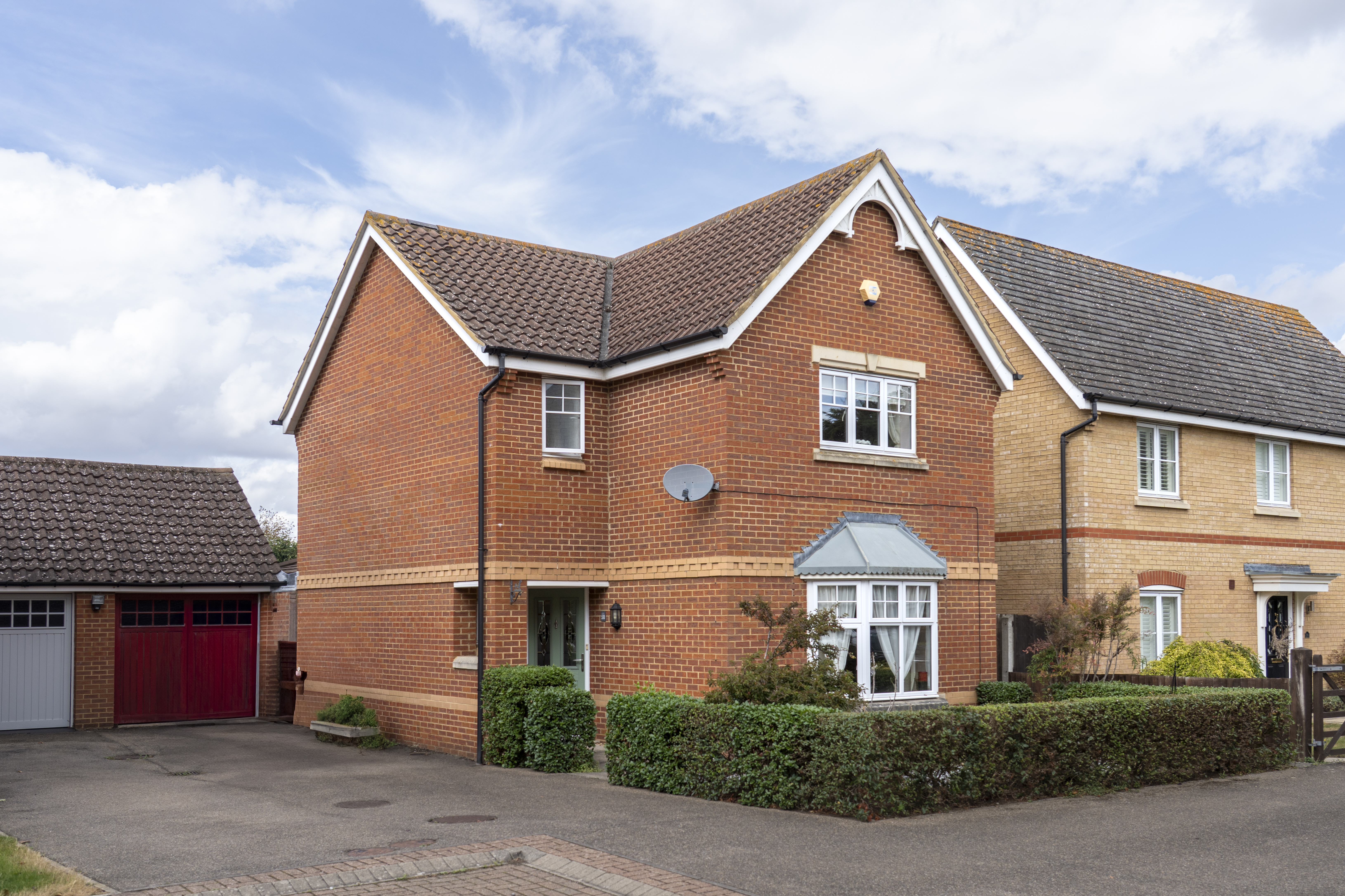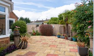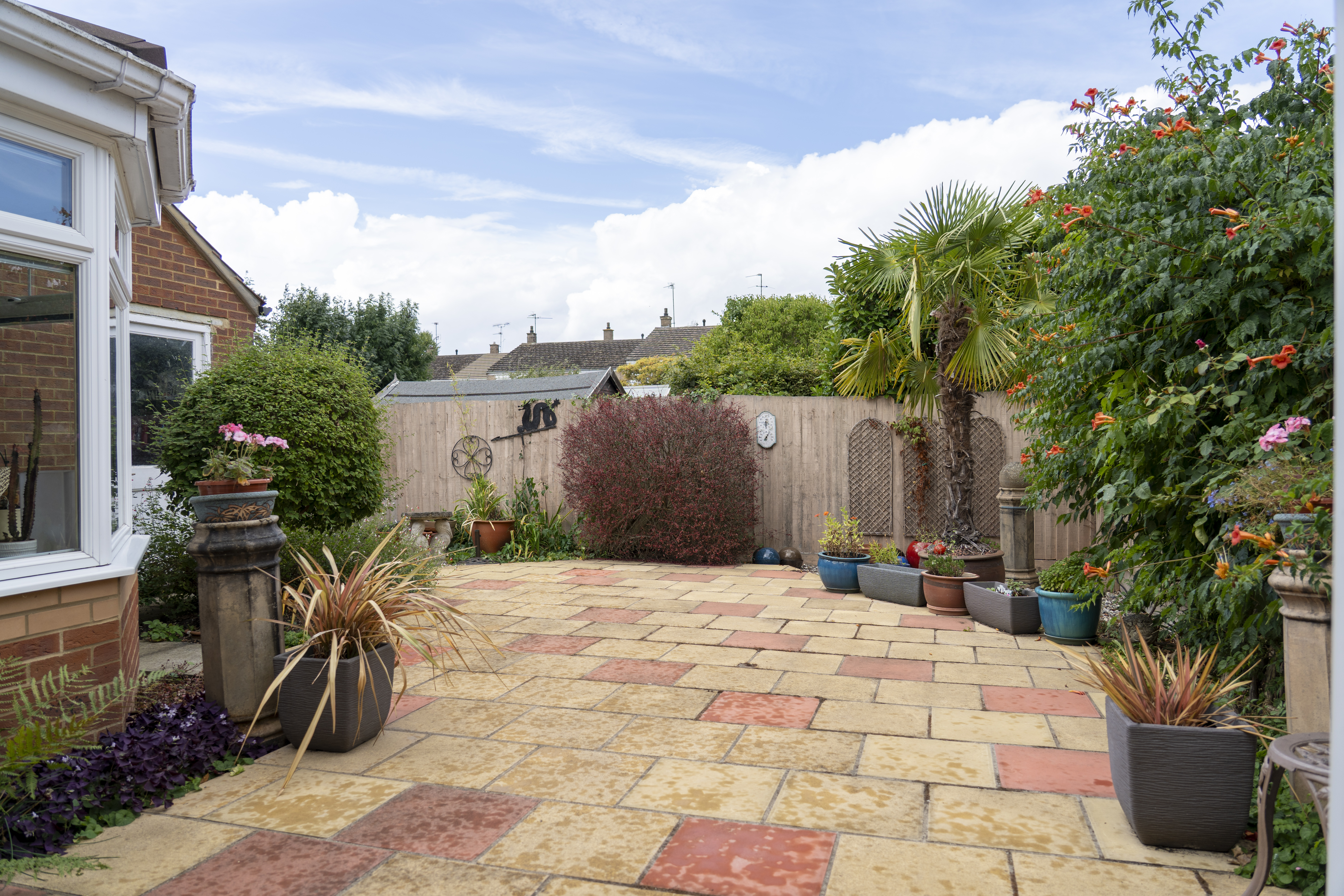 The property is pleasantly located at the end of a cul-de-sac, with equally attractive detached homes surrounding. There is an established front garden, with hedging along the boundary, and gated access leads to the street. A driveway alongside provides off-road parking for two vehicles, leading to a detached brick garage with overhead storage and power connected, and a personal door to the garden. The rear garden is not overlooked and is paved for low maintenance, with mature shrubs and planting, fencing to all boundaries and a timber shed included.