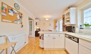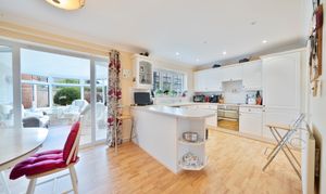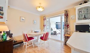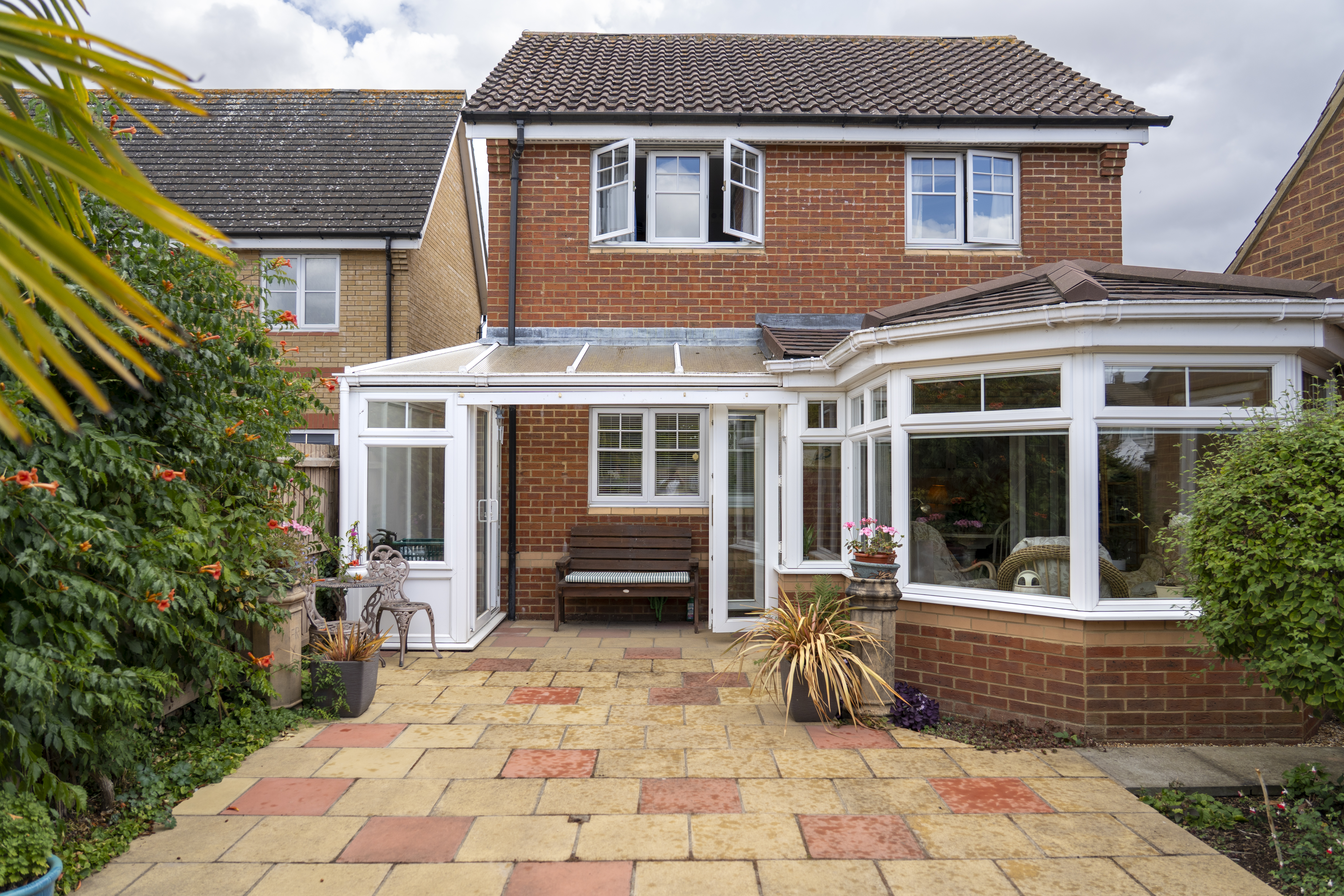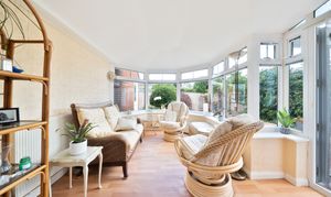 A storm porch covers the entrance to this chain-free home; the good-sized entrance hall features an understairs storage cupboard, ground floor WC and stairs rise to the first floor accommodation. The comfortably-sized sitting room features an attractive bay window to the front aspect, xxxxx. Spanning the full width of the house, the open plan kitchen comprises a comprehensive range of wall and base units with a built-in oven, xxxx and space for a dining table. There is a useful separate utility room with additional wall and base units built in, plus space for a washing machine and a wall-mounted gas boiler. The double-glazed lean-to provides a covered passage leading the way to the rear garden and a further area of storage for shoes/coats, etc. The conservatory provides another reception space with space for sofas and a table, and offering wonderful views of the private garden.