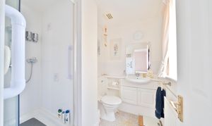 The first floor accommodation comprises a master bedroom with built-in wardrobes, plus an en suite shower room. There are two further double bedrooms and a family bathroom, accessed via the galleried landing which also includes a loft access and airing cupboard.