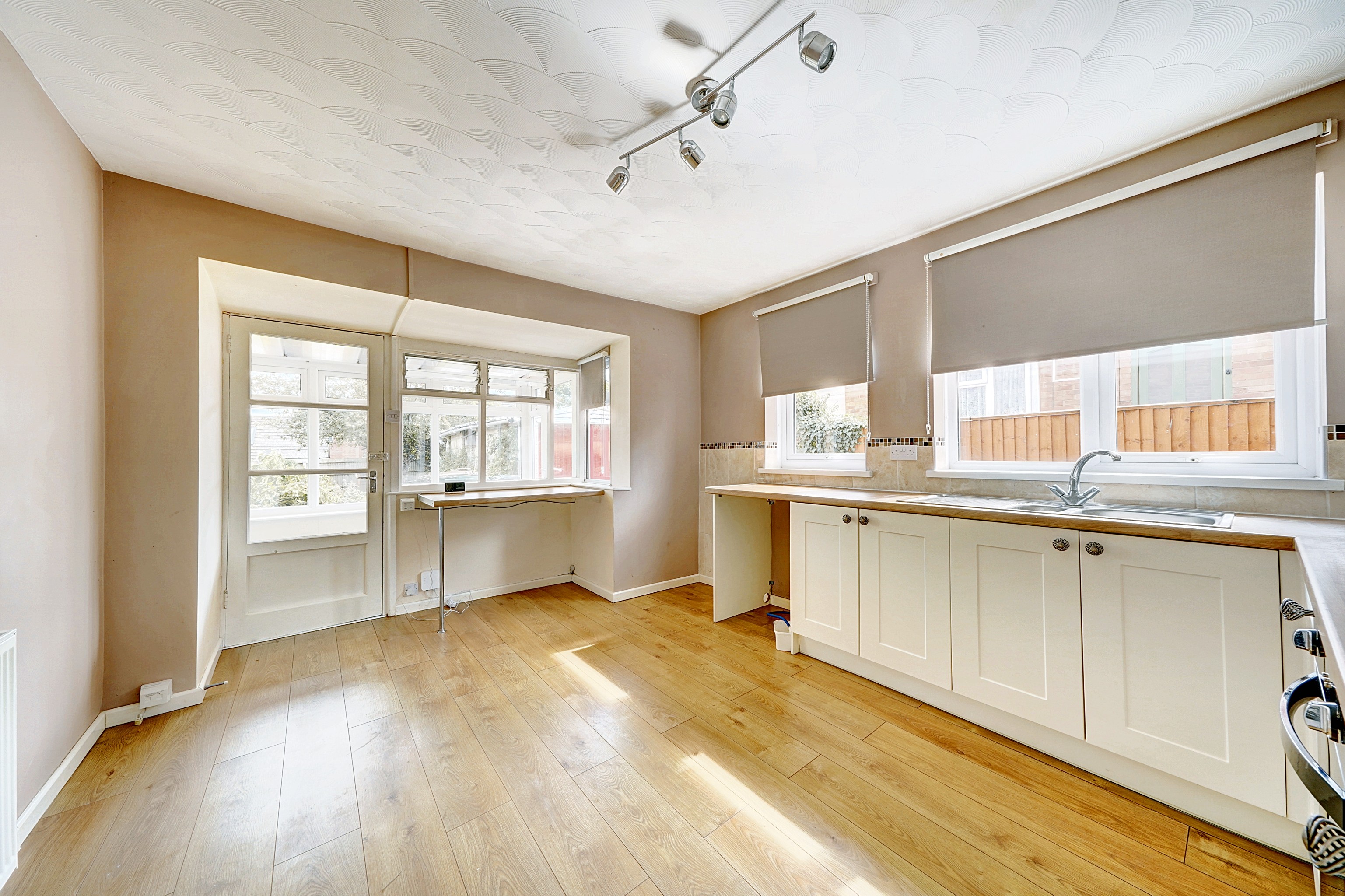 The kitchen diner, also at the rear, is fitted with a range of modern base and wall units, built-in electric oven and hob, and also leads into the conservatory.