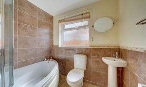 To the front of the property, you will find a well proportioned master bedroom and two further smaller double bedrooms, all served by a family bathroom with contemporary white suite and a corner bath with shower over.