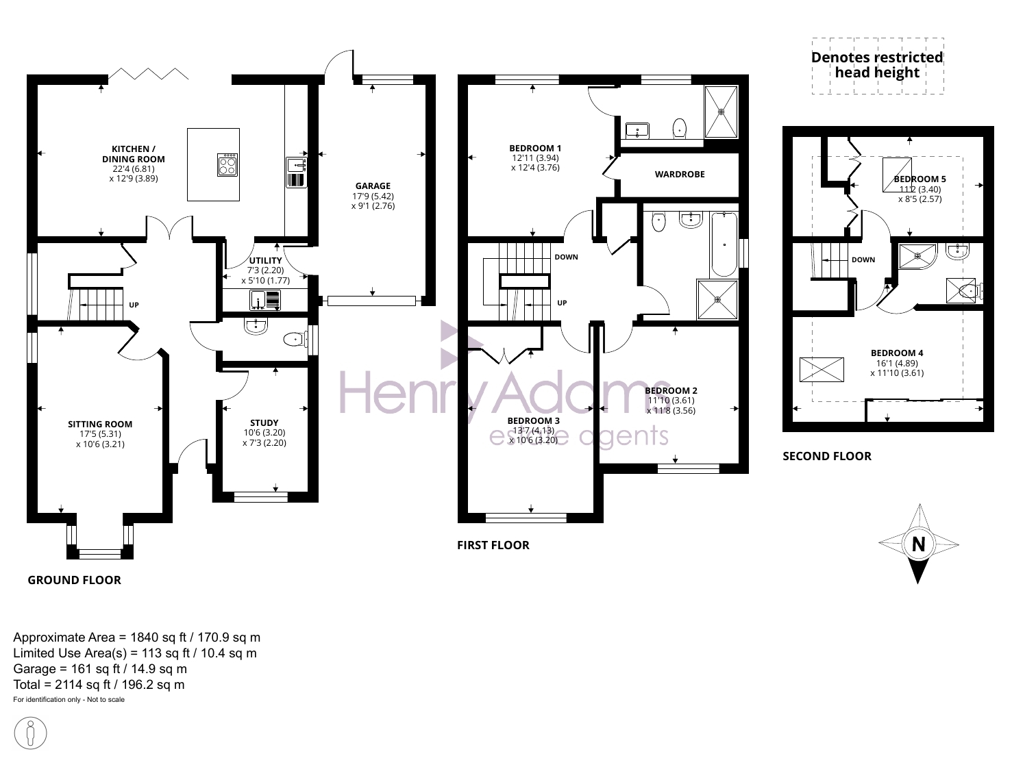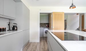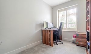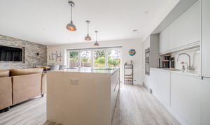 The thoughtfully arranged accommodation spans three spacious floors, featuring a stunning open-plan kitchen and family room with a separate utility room, a welcoming sitting room and a study, perfect for home working. Upstairs, there are three generous bedrooms, including one with an en-suite, along with a stylish family bathroom. The top floor offers two further bedrooms, one benefitting from an en-suite and the other with excellent storage space.