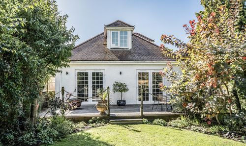 This three bedroom semi-detached home features an inviting entrance hall with a cloakroom and access to both the sitting room and a stylish, contemporary fitted kitchen. The kitchen boasts an excellent range of storage cupboards and drawers, along with integrated Zanussi appliances including a double electric oven, gas hob with extractor hood, dishwasher and a larder-style fridge/freezer. (Please note: the Quooker tap and water softener are not included in the sale.) The spacious, double aspect sitting room enjoys plenty of natural light and offers direct access to the rear garden via French doors. Upstairs, the first floor comprises a principal bedroom with an en-suite shower room, two further bedrooms and a modern family bathroom.