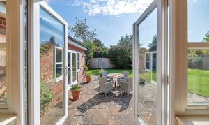 Outside, the wrap-around garden is fully enclosed and mainly laid to lawn with a paved patio perfect for al-fresco dining. The rear boundary adjoins open village fields, giving uninterrupted green views, while the garden itself is regarded by the owners as a year-round “sun-spot”, benefiting from early-morning sunshine even in winter. There are well-tended beds, a good sized timber shed/workshop with power points throughout and plenty of scope for green-fingered buyers to personalise the space.