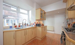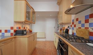 The property is entered via a porch leading into a reception hall with stairs to the first floor. There are two good sized reception rooms with the front room having circular bay window whilst the back room opens into a lean-to glazed porch overlooking the rear garden . The kitchen is fitted with wall and base units providing ample storage with integrated electric oven and grill, five ring gas hob with extractor hood above, drainer sink and space for fridge freezer. There is a useful under stair storage pantry along with an external door out to the side of the house. Completing the ground floor accommodation is a small utility and WC at the back of the kitchen (the WC is currently disconnected).