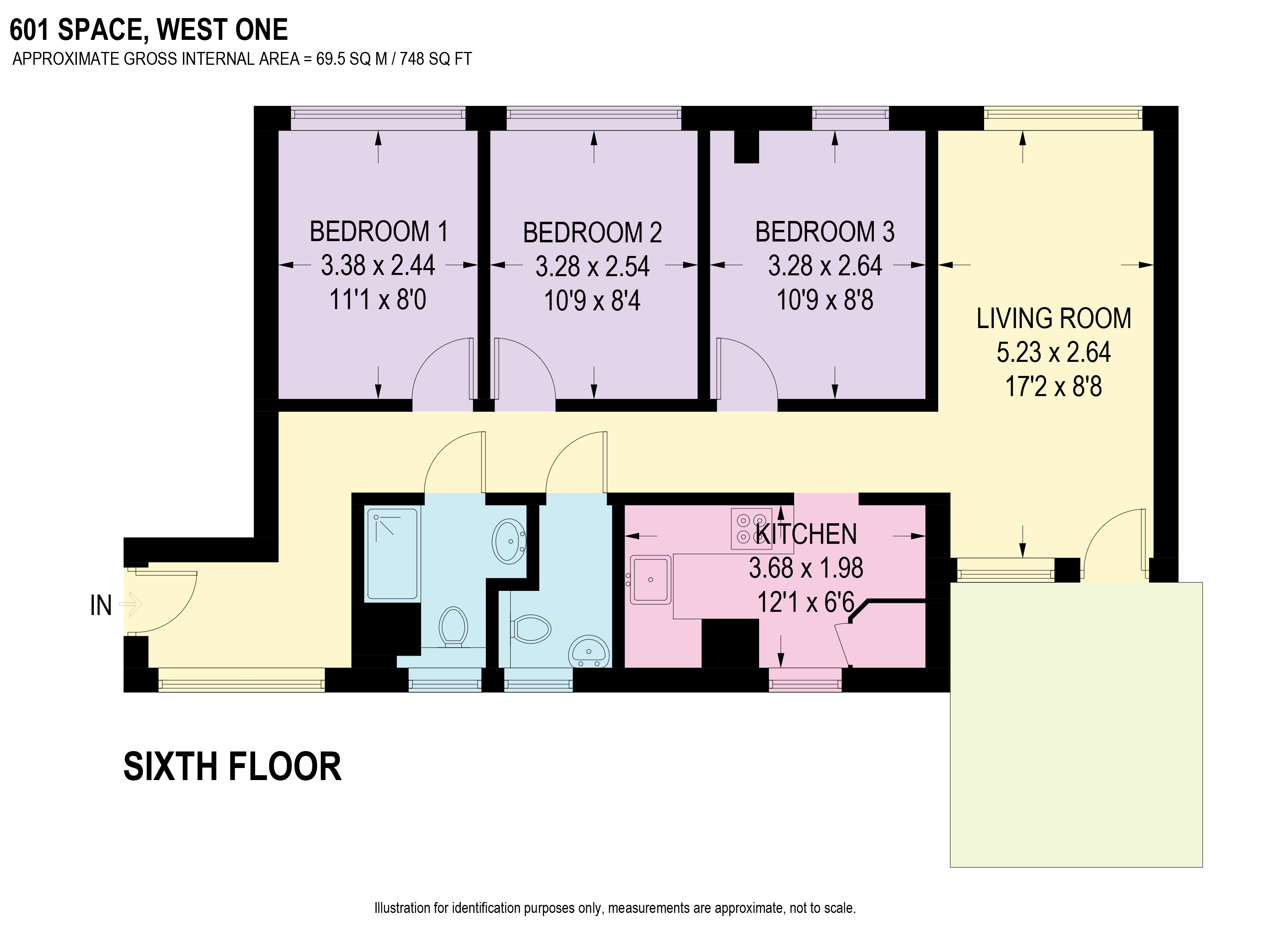 This thoughtfully designed apartment features a separate kitchen and dining area for effortless hosting, a bright, inviting lounge for everyday comfort, three equally sized bedrooms, a modern shower room and an additional WC for convenience.