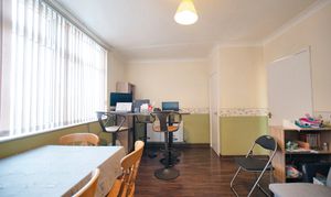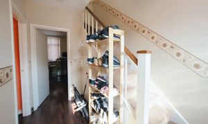 With laminate flooring, double glazed window, radiators, stairs leading to the first floor, doors leading to the living room and kitchen.