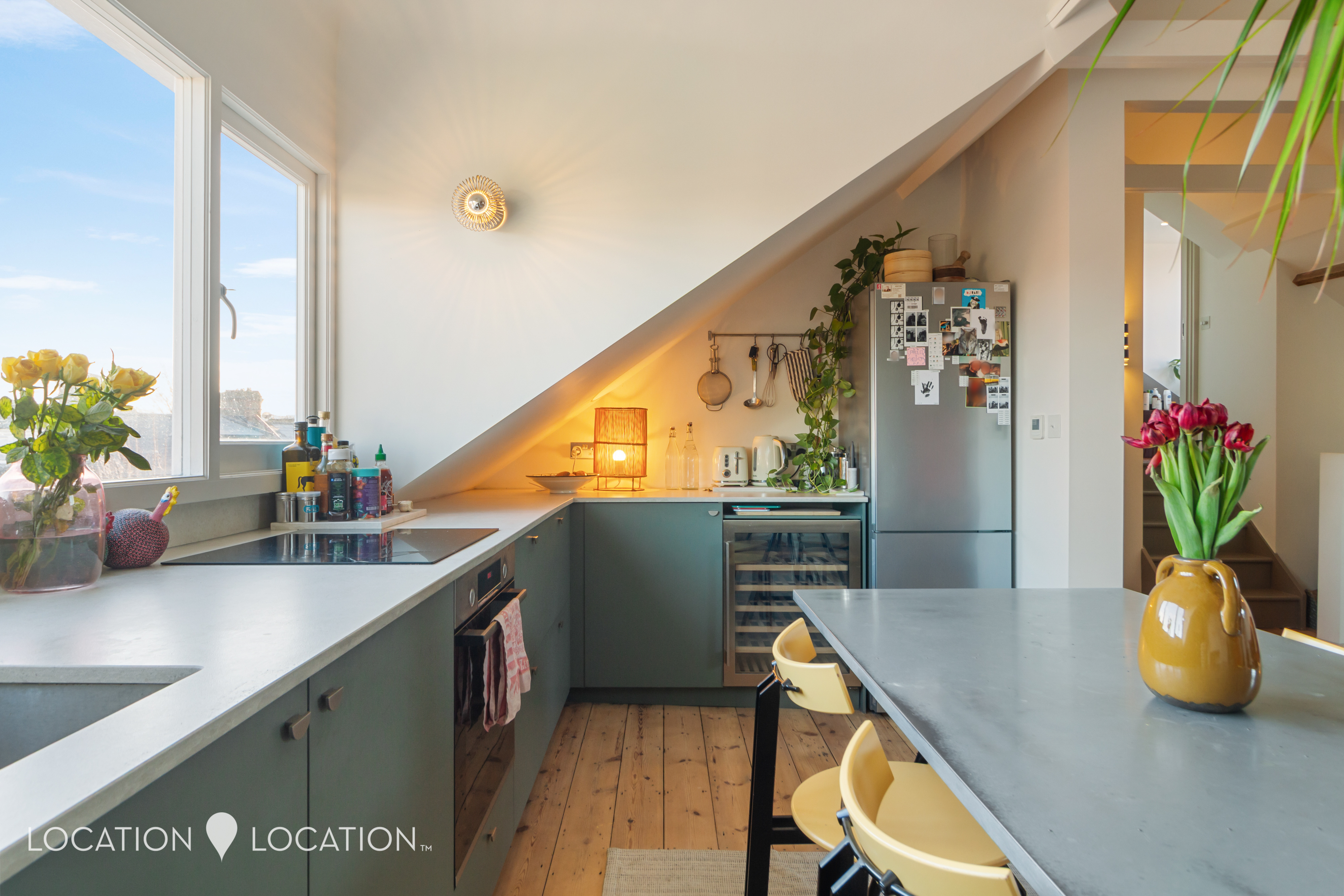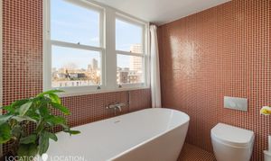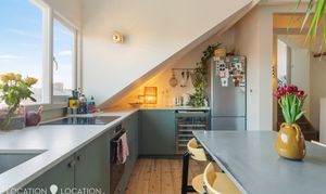 Boasting two spacious double bedrooms, a super stylish bathroom, and a gorgeous open-plan kitchen/living room, the apartment has excellent proportions, offering space to grow into. There’s a private roof terrace, too, which has far reaching views and captures sun all day through.