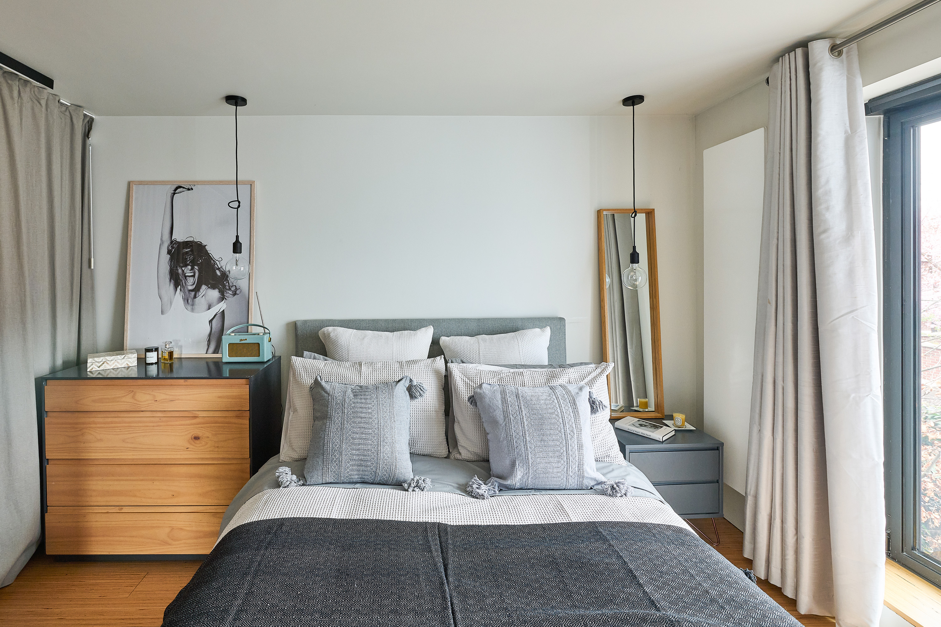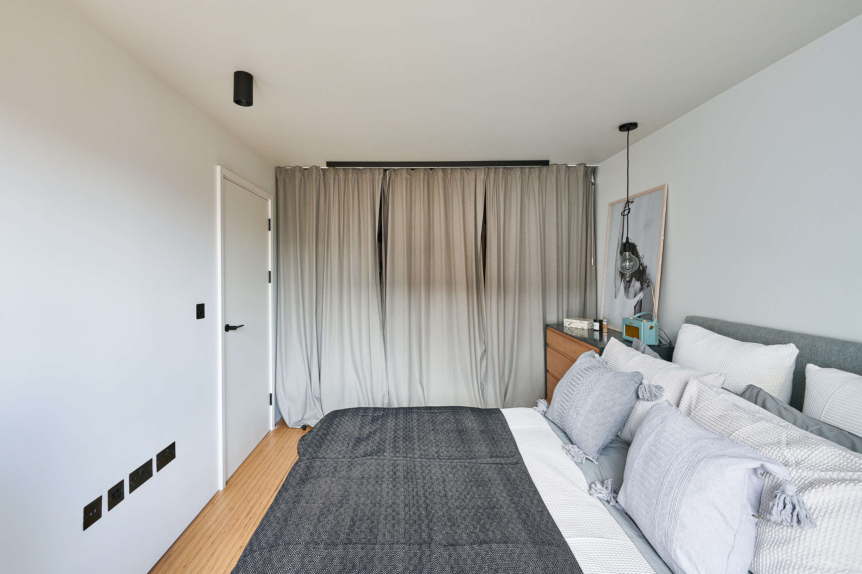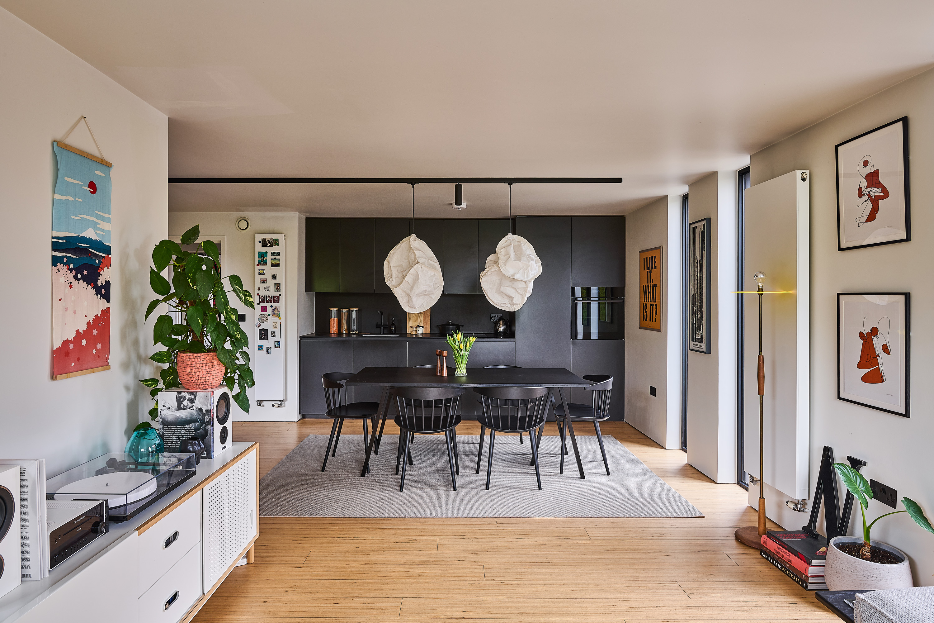 Opposite the huge open sweep of Burgess Park, this first-floor two-bedroom flat forms part of a small yet confident 2017 development by Emulsion Architects. From the street, its material palette nods to the area’s industrial past, with metal mesh and charred timber cladding lending texture and depth.