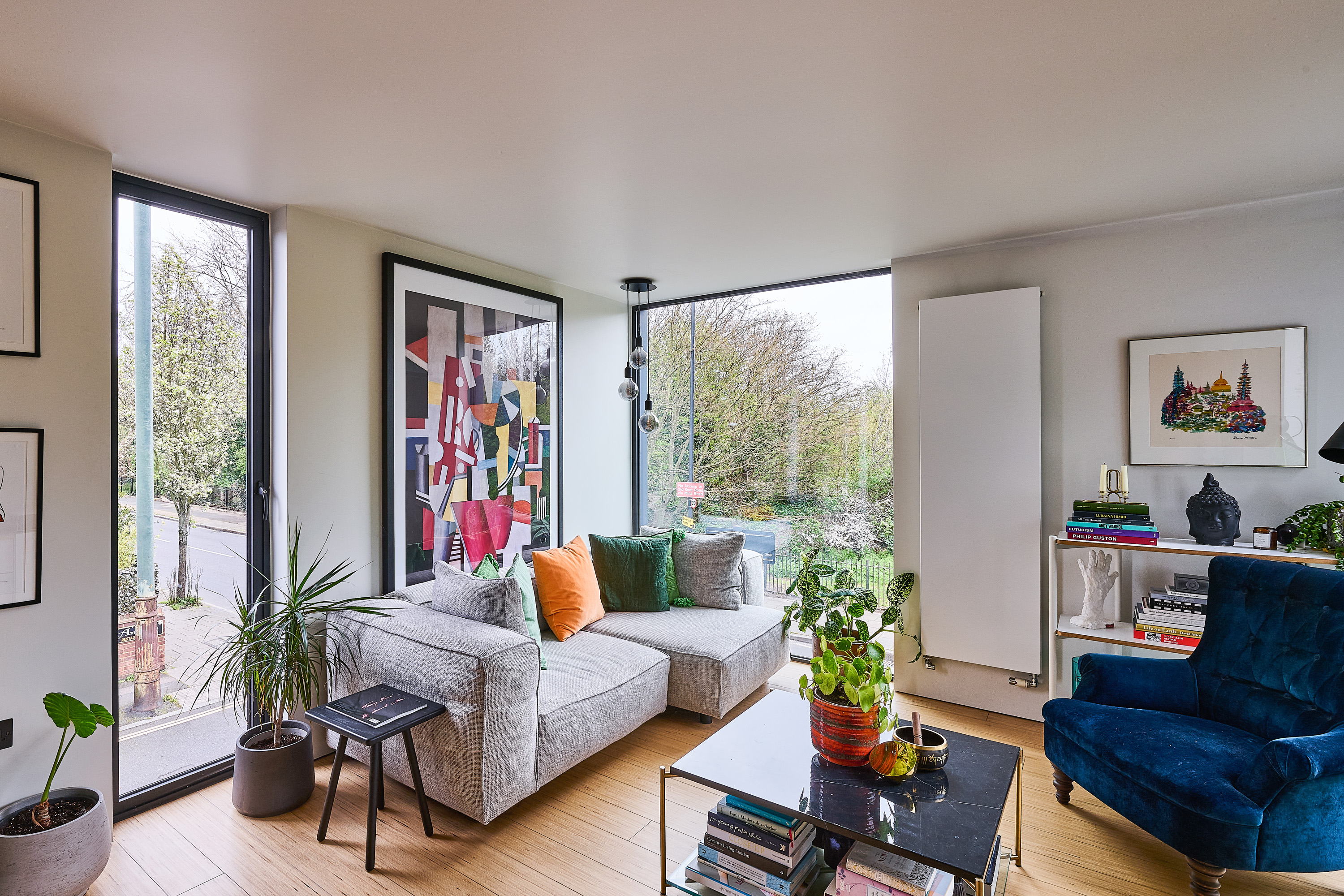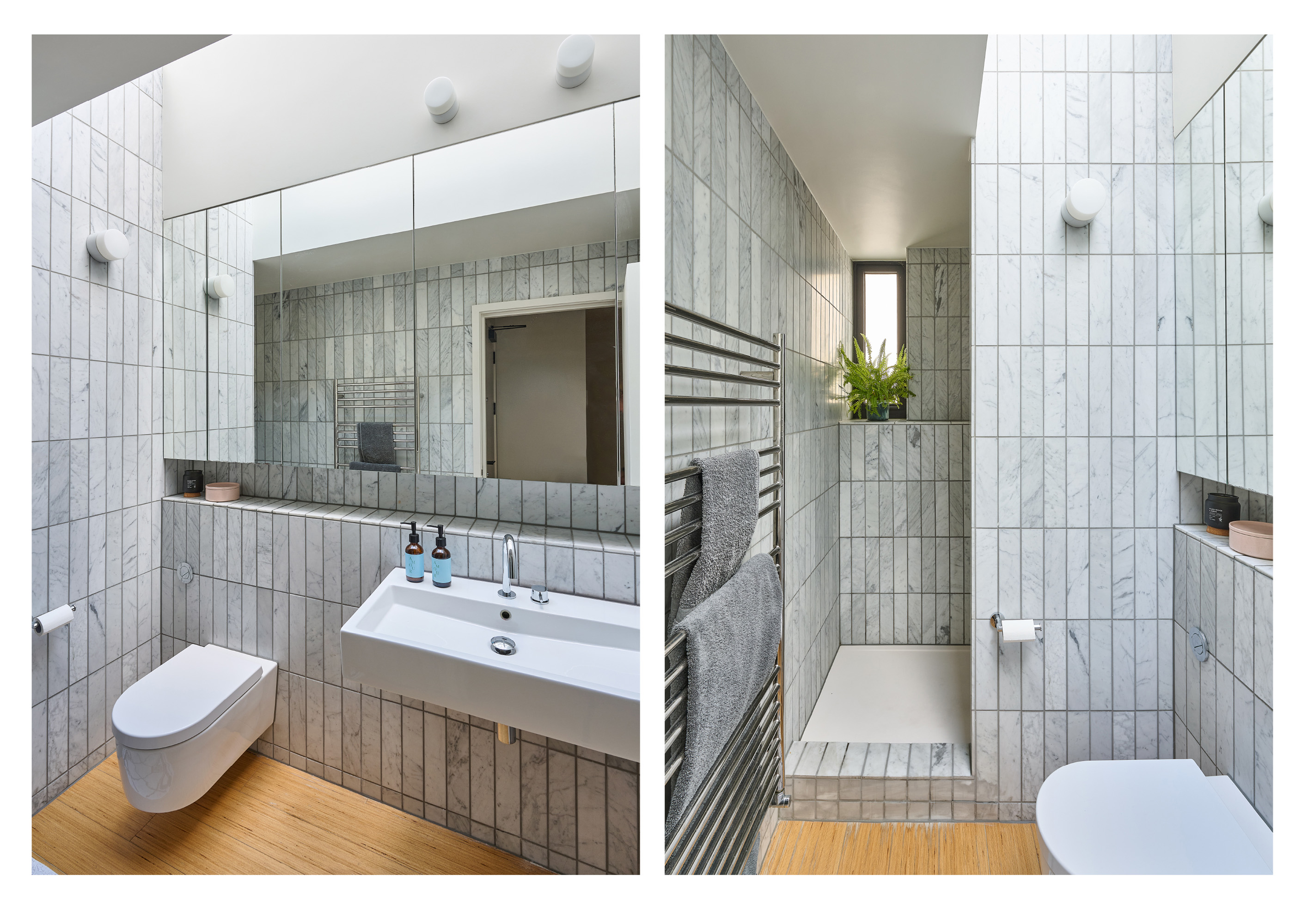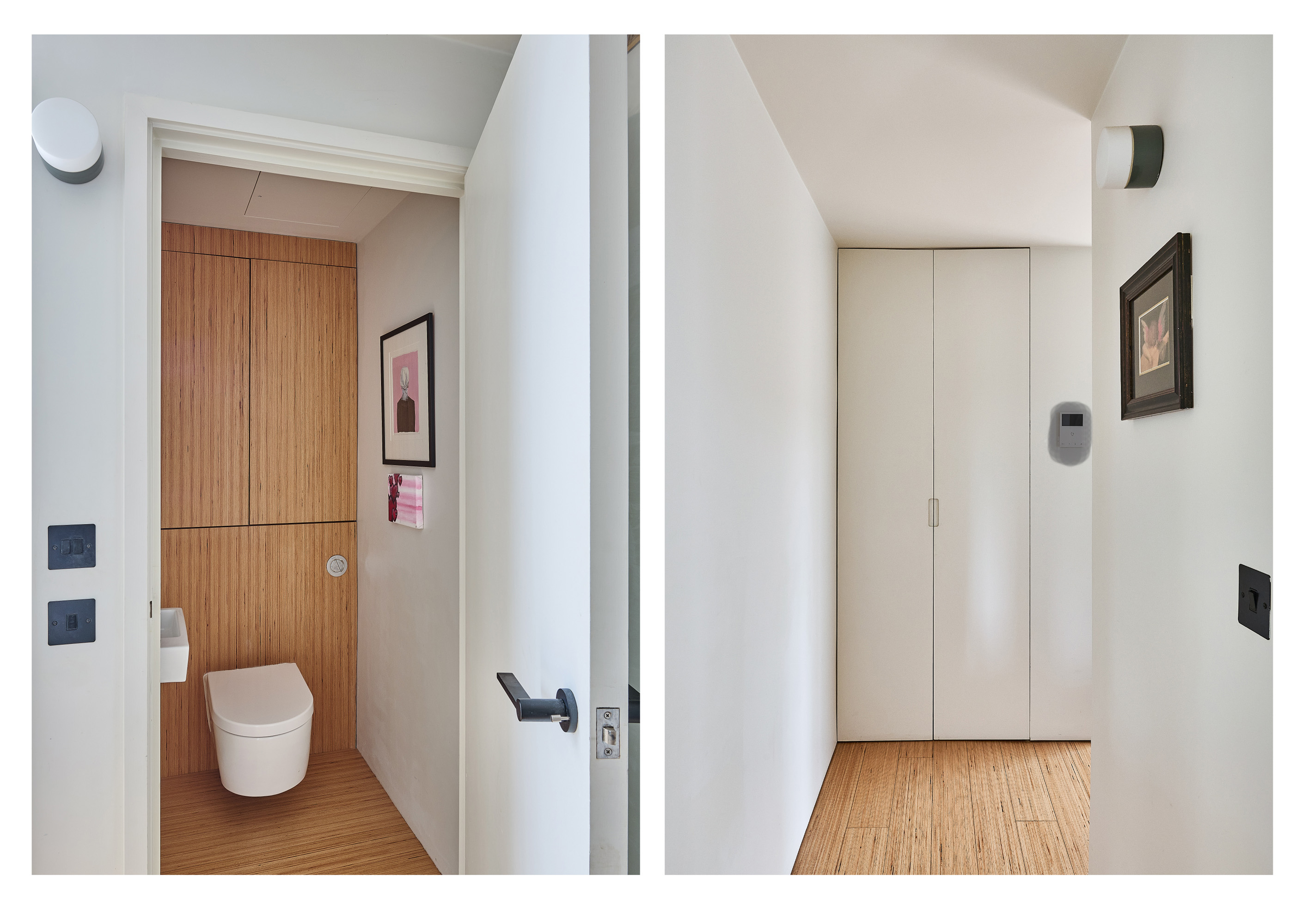 The development in which this flat sits was a self-initiated project by Emulsion, which reimagined the former site of an off-licence as three contemporary urban homes arranged across four storeys. Instead of clearing the site, the scheme adopts an adaptive reuse strategy, which contributes to achieving a BREEAM Excellent rating.