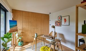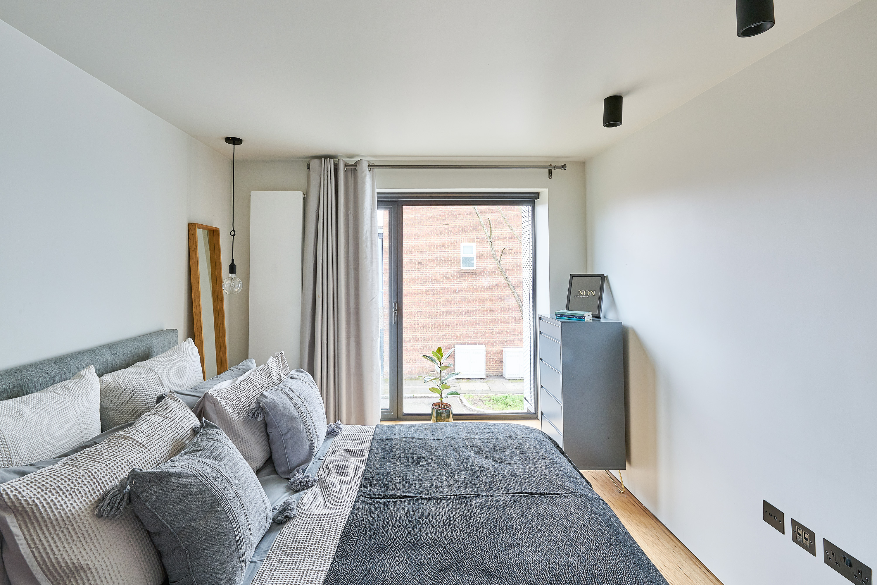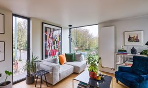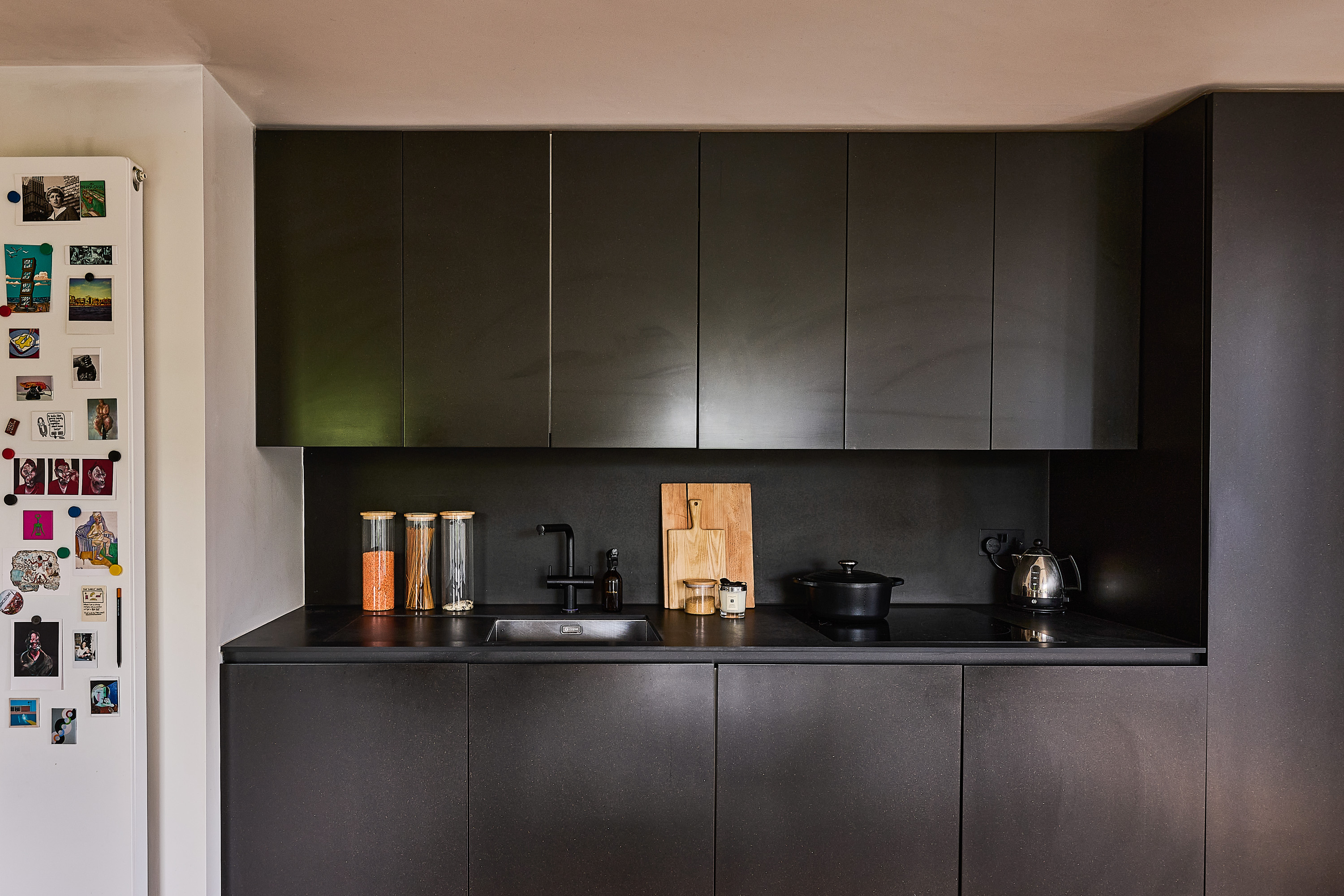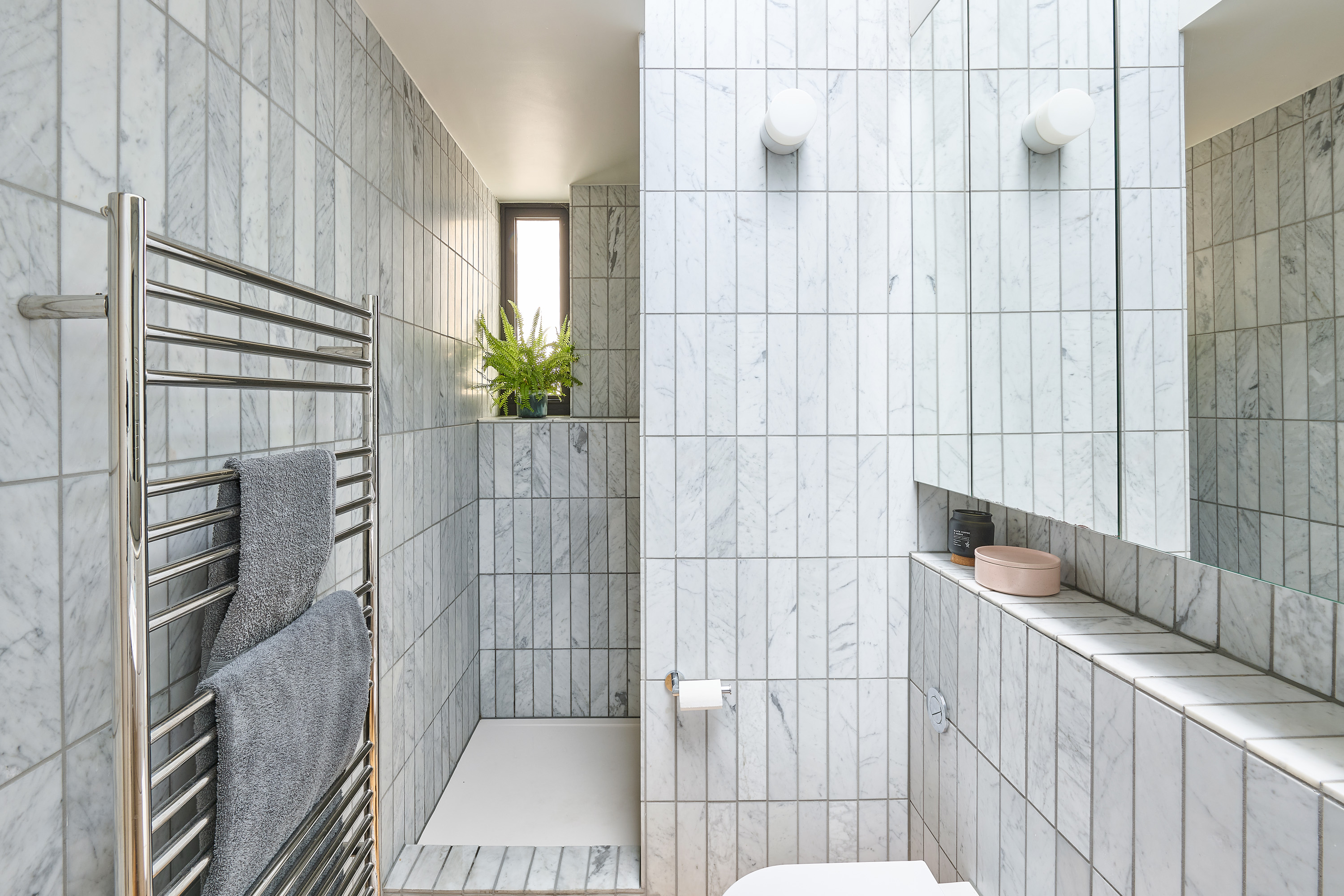 The development in which this flat sits was a self-initiated project by Emulsion, which reimagined the former site of an off-licence as three contemporary urban homes arranged across four storeys. Instead of clearing the site, the scheme adopts an adaptive reuse strategy, which contributes to achieving a BREEAM Excellent rating.