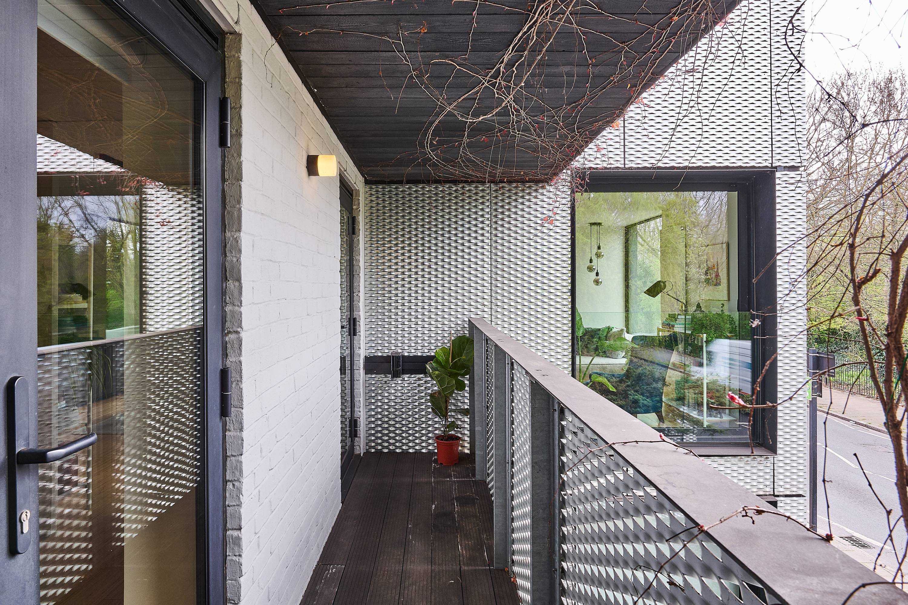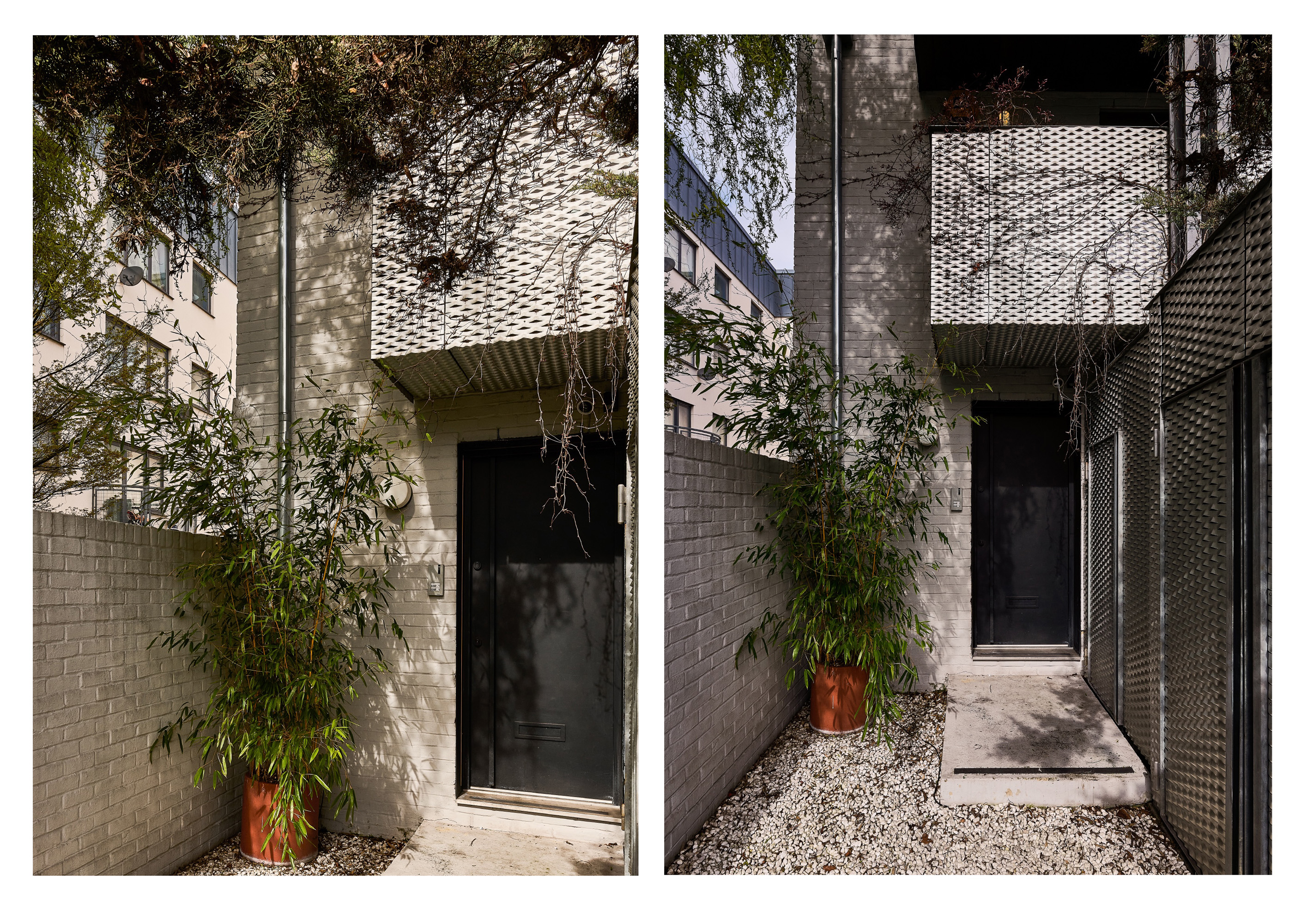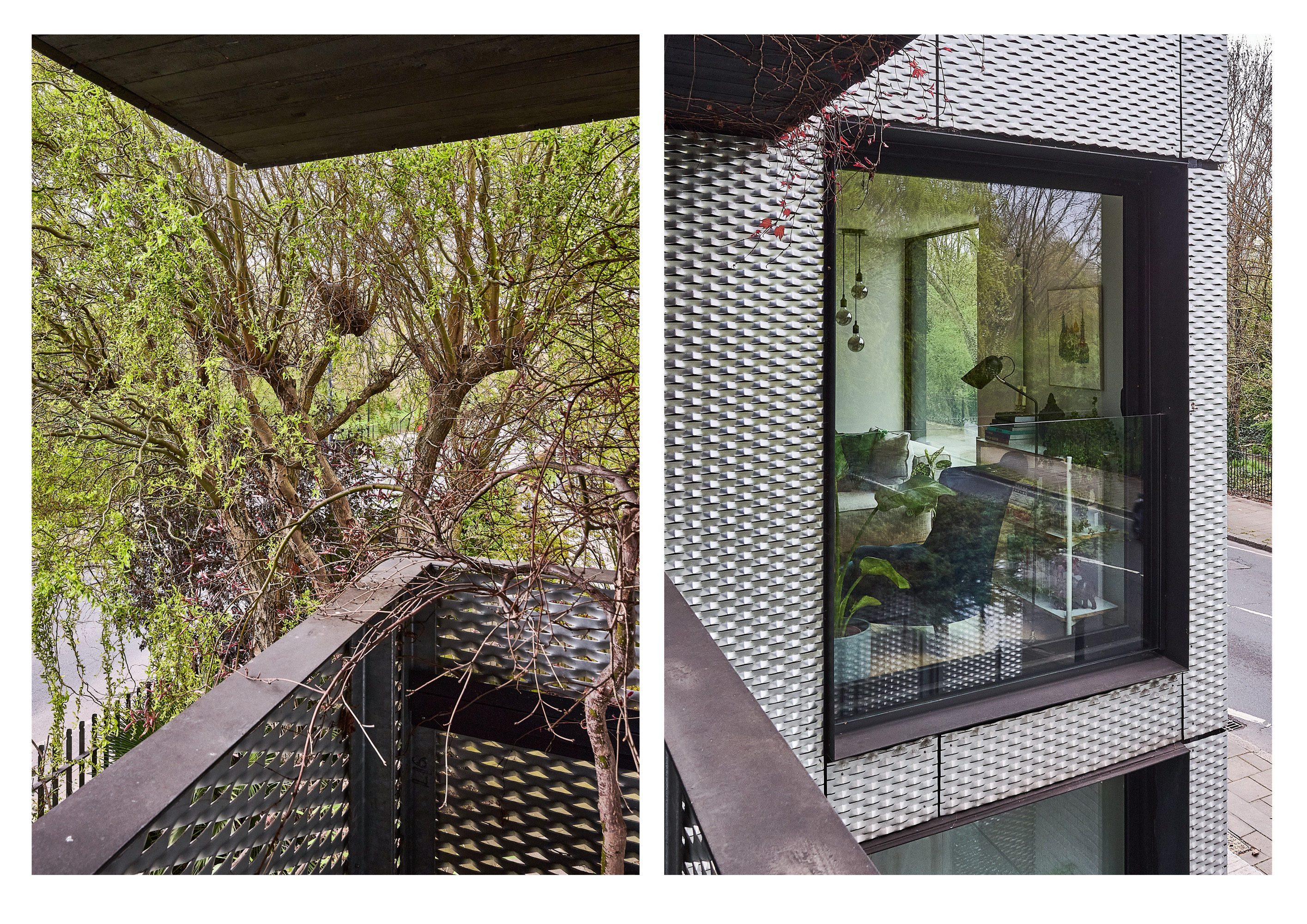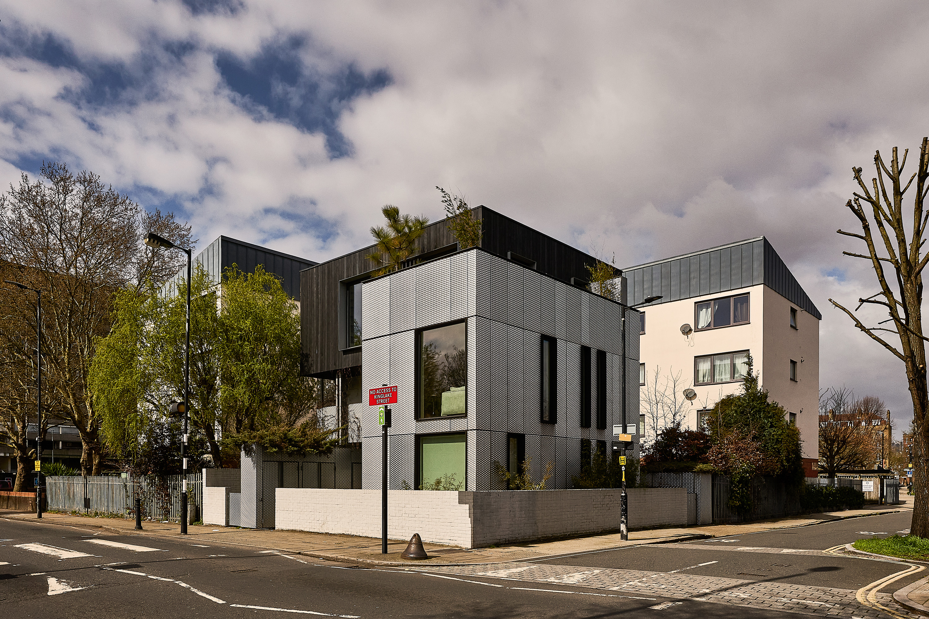 The selection of materials draws influence from the area’s industrial past and the energy of the former Surrey Canal that once ran through what is now Burgess Park. It incorporates elements such as metal mesh and Japanese charred timber (shou-sugi ban) cladding, with its colours ranging from inky black to a silver-grey that shimmers in sunlight.