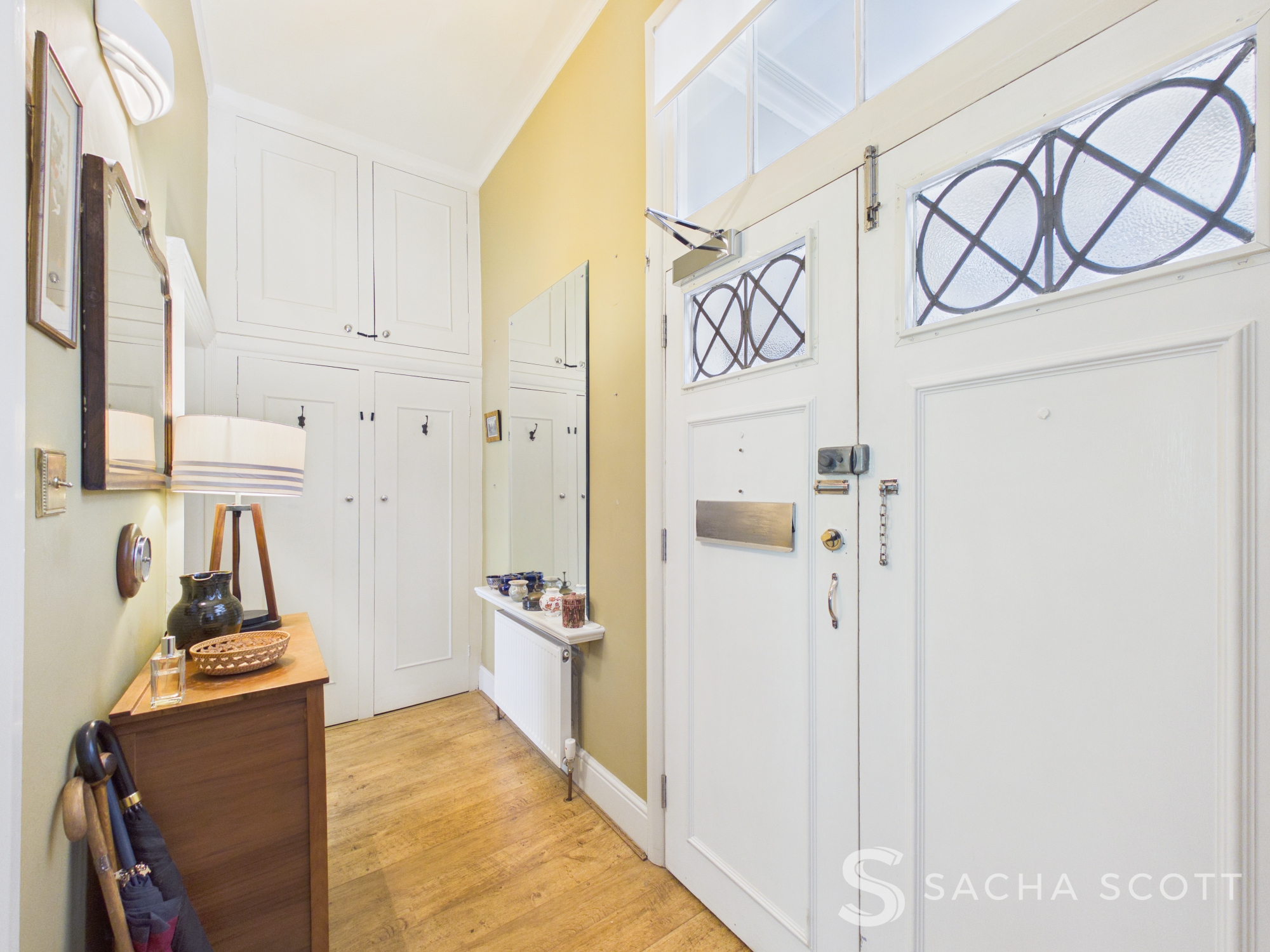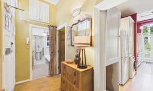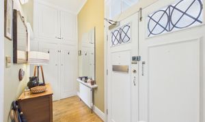 This gorgeous entrance hall really sets the tone for what is a wonderful period apartment. A double door entrance opens up on to a generous hallway that offers high ceilings and plenty of storage.