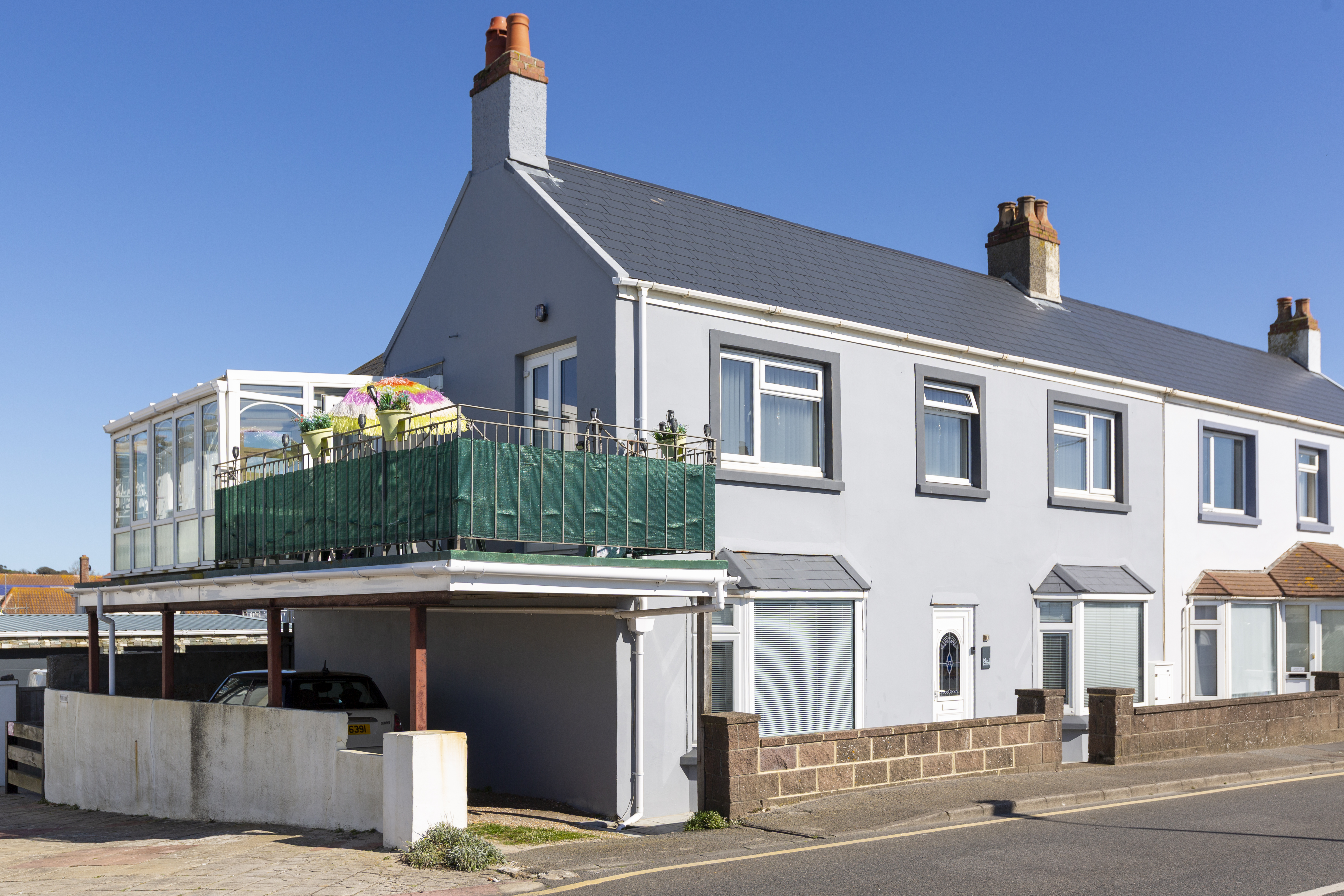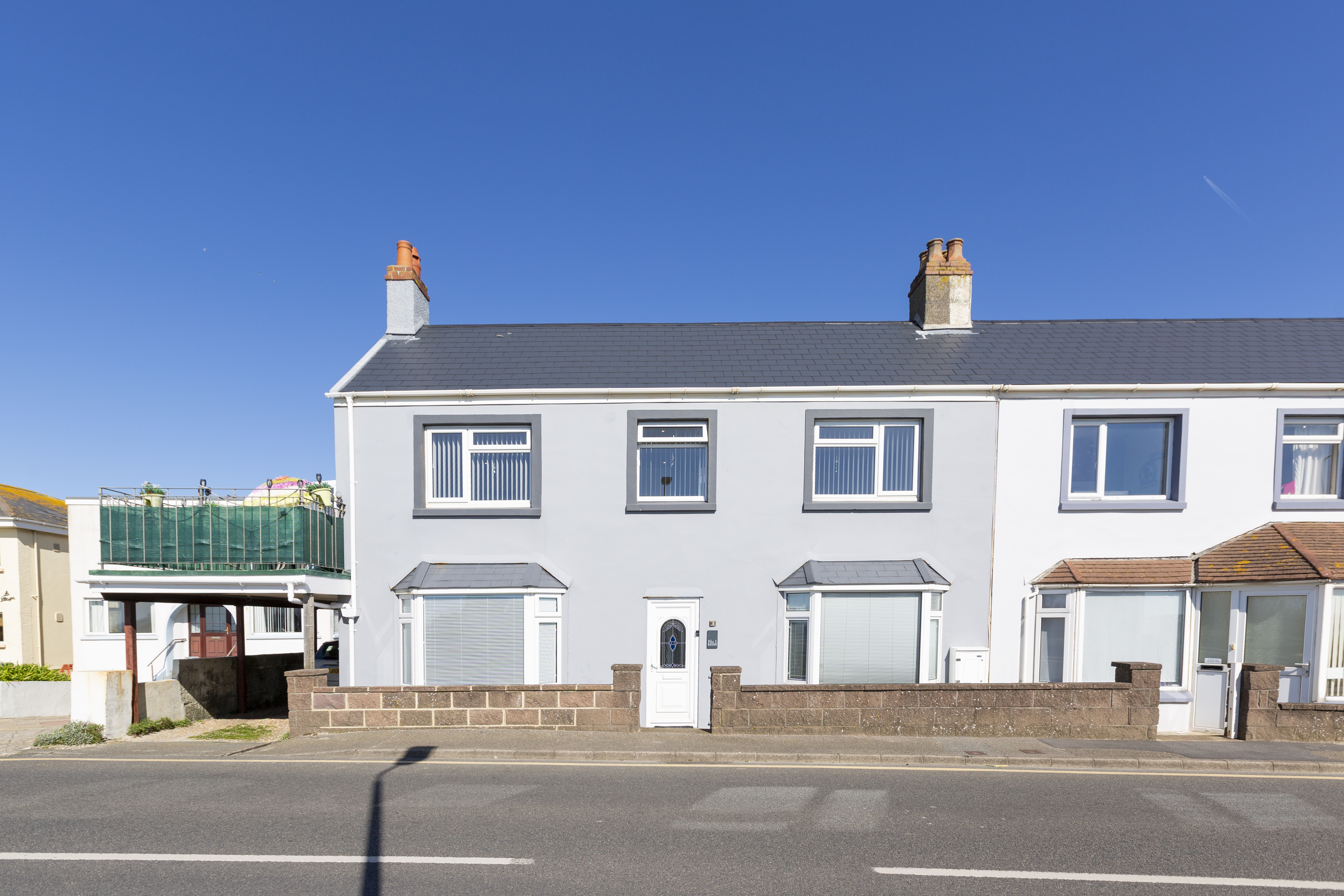 This three/ four bedroom semi detached house offers an exceptional opportunity to enjoy uninterrupted sea views from a prime south coast location, directly opposite the beach and close to local amenities. Designed to maximise the stunning outlook, the versatile property features a spacious first floor living area, opening onto a west facing terrace and a bright conservatory, perfect for relaxing or entertaining while taking in the sunset. The accommodation comprises three generous double bedrooms, two with ensuite facilities, in addition to a well appointed house bathroom. A separate kitchen and utility room provide practical living spaces, while parking for two cars adds convenience, with additional public car parks within walking distance. The Number 1 bus route is right on your doorstep, offering easy access to the wider area. Currently arranged as a single family home, the property also presents the flexibility to be adapted as a two generation residence or as a home with income (subject to the necessary consents). With its enviable position, versatile layout, and superb views, this home represents a rare opportunity to secure a sought after coastal lifestyle. Early viewing is highly recommended to appreciate all that this unique property has to offer.