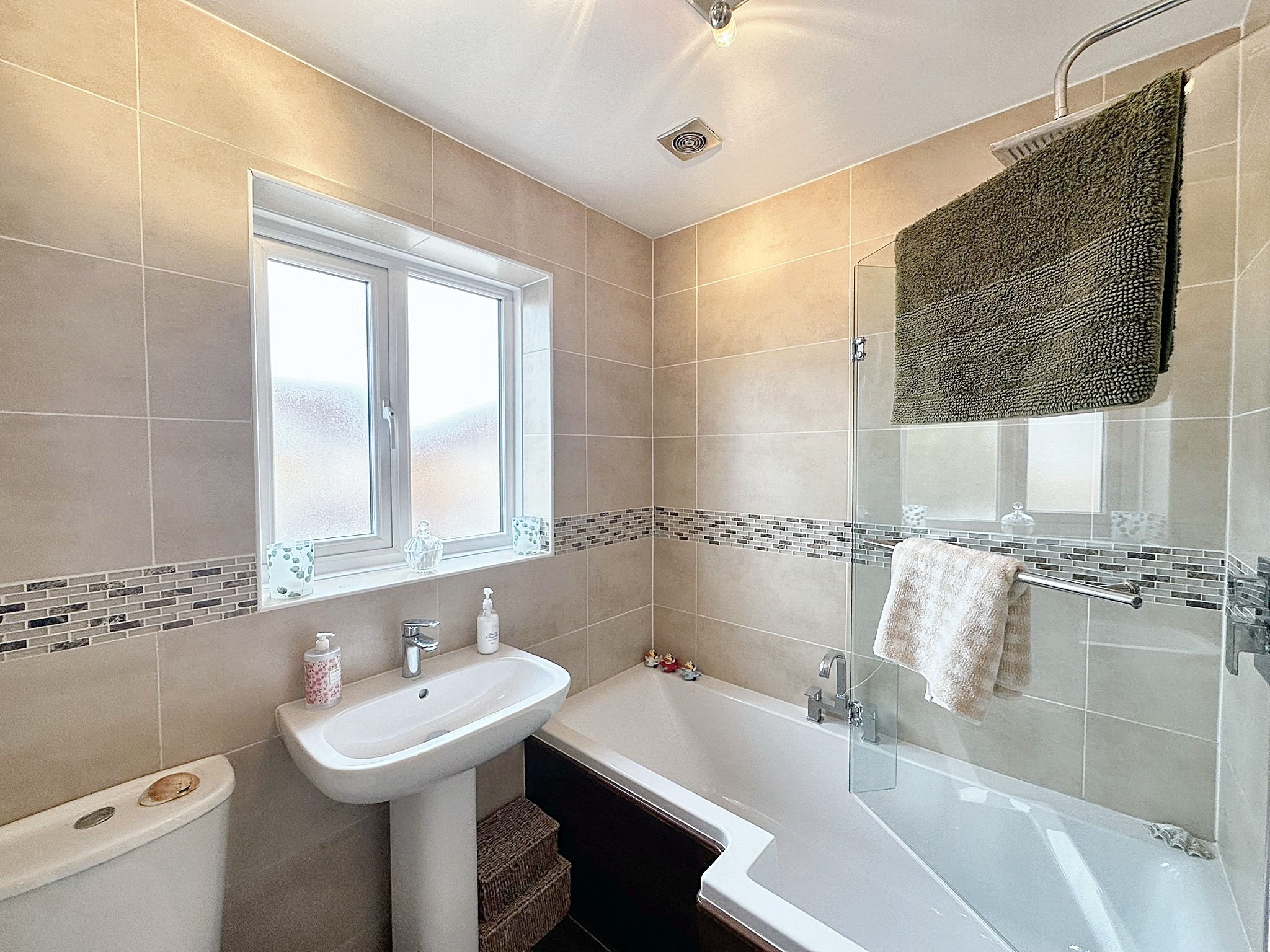 Upstairs, the property continues to impress with three generous double bedrooms, making it ideal for a growing family. The main bedroom benefits from fitted wardrobes and a private en-suite, offering a peaceful retreat from the rest of the home. The two additional double bedrooms are well-sized, providing flexible options for children's rooms, guest accommodation, or even a second home office. A stylish family bathroom serves the remaining bedrooms.