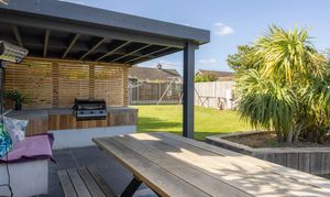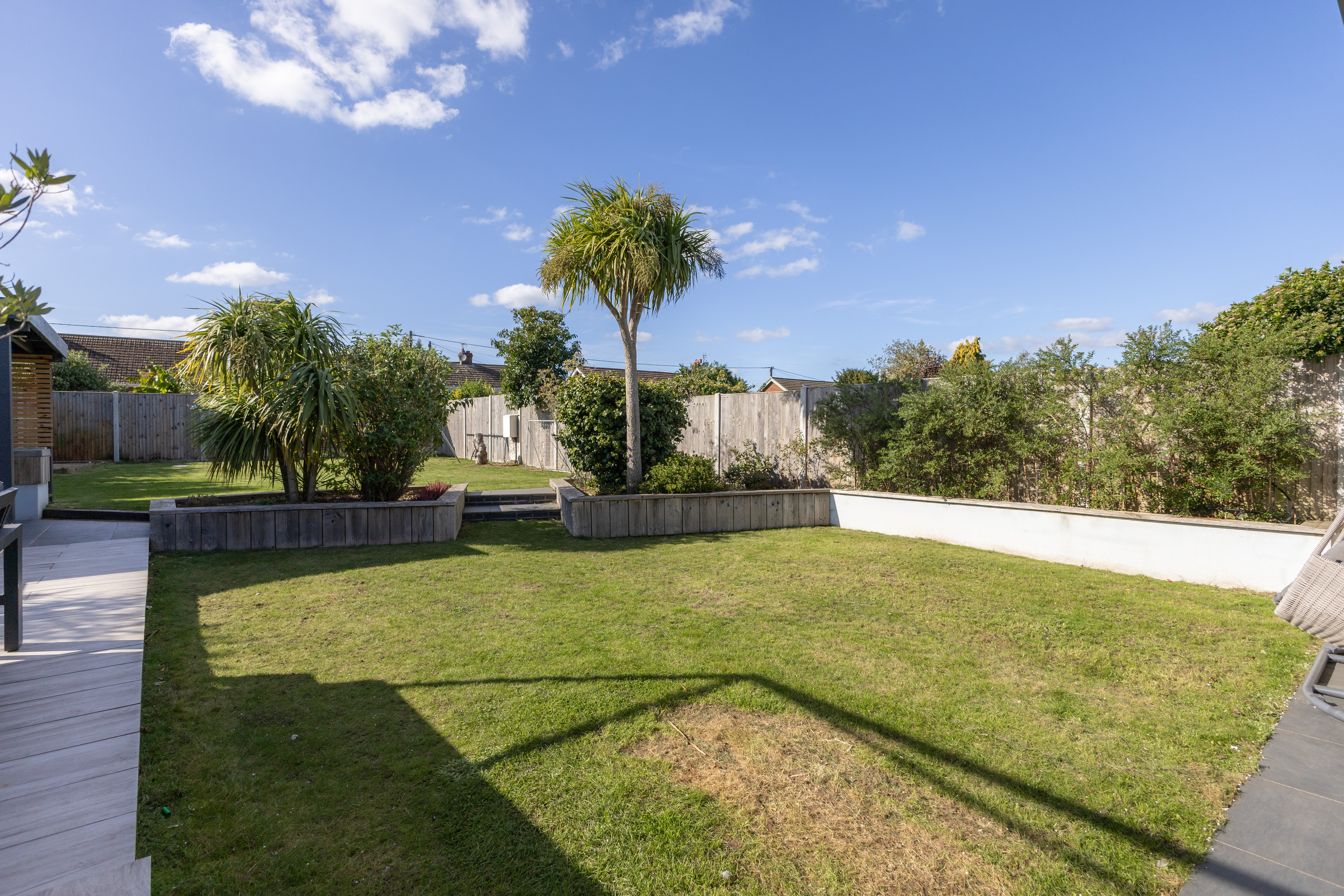 The generously-sized rear garden is fully enclosed via fencing and consists largely of laid to lawn with raised flower beds and borders which are well stocked with a variety of plants, shrubs and trees. The standout feature of the garden has to be the beautifully tiled patio with a covered BBQ area providing the ideal space for outdoor dining and entertaining.
