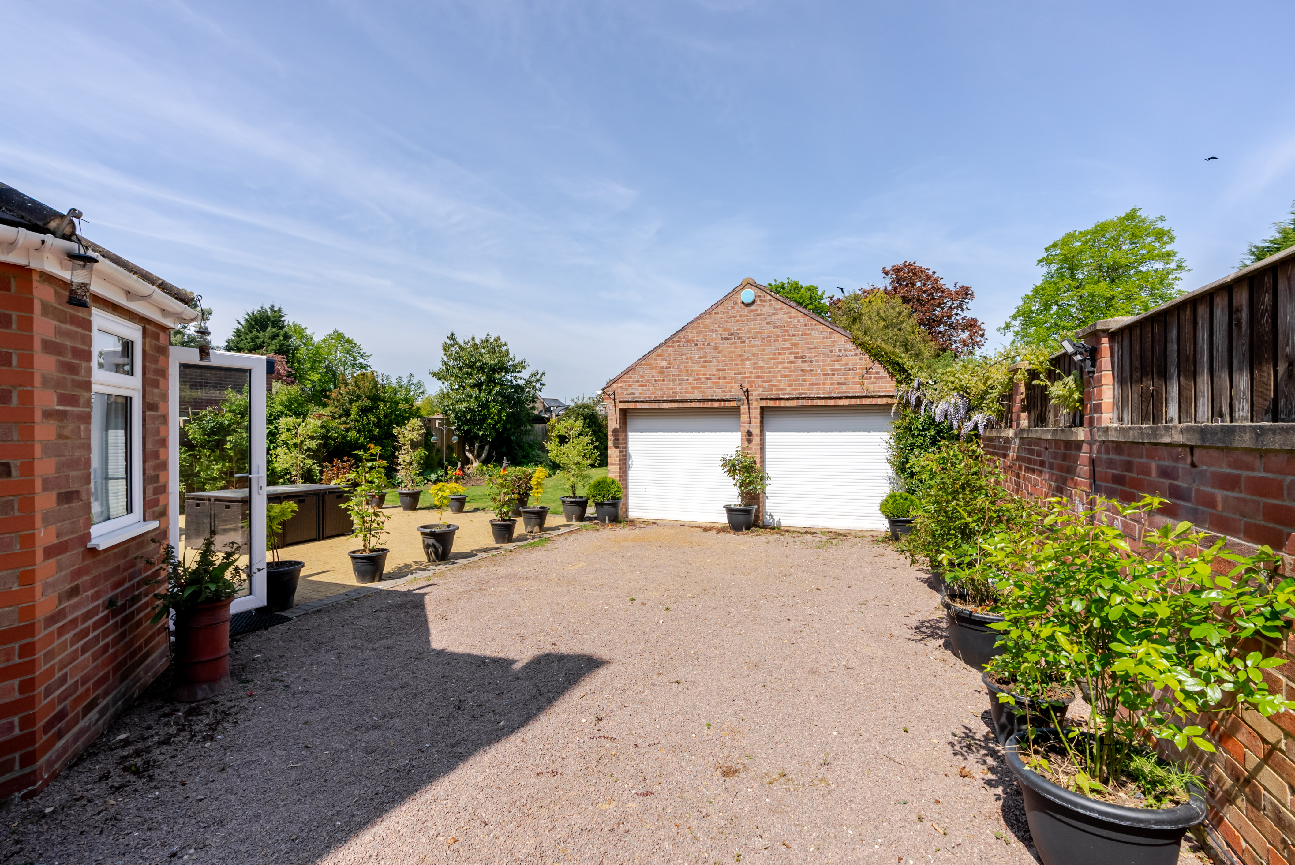 This detached 1950s home sits proudly behind electrically operated gates with an attractive front façade and plenty of driveway parking leading through to the detached double garage.