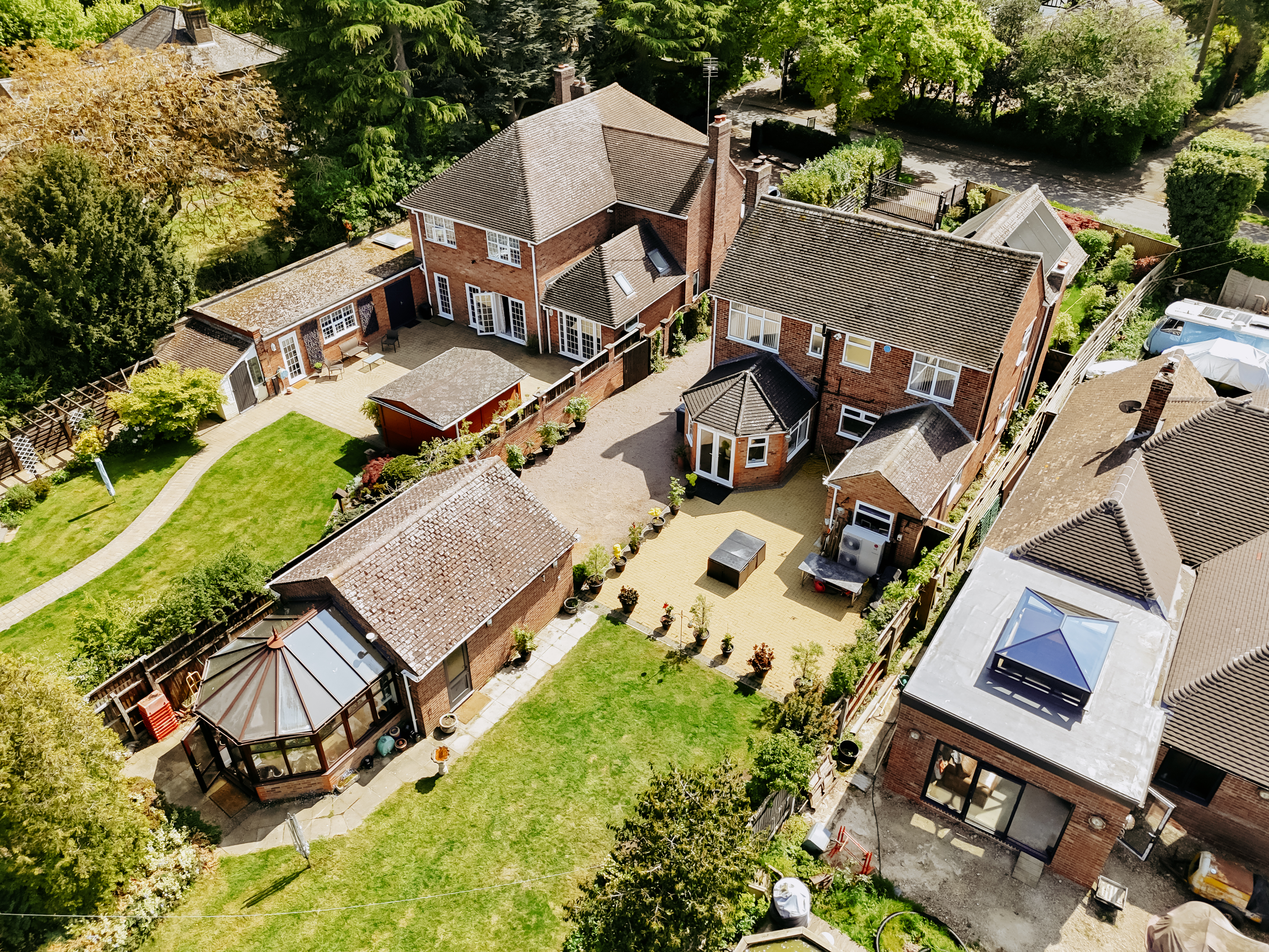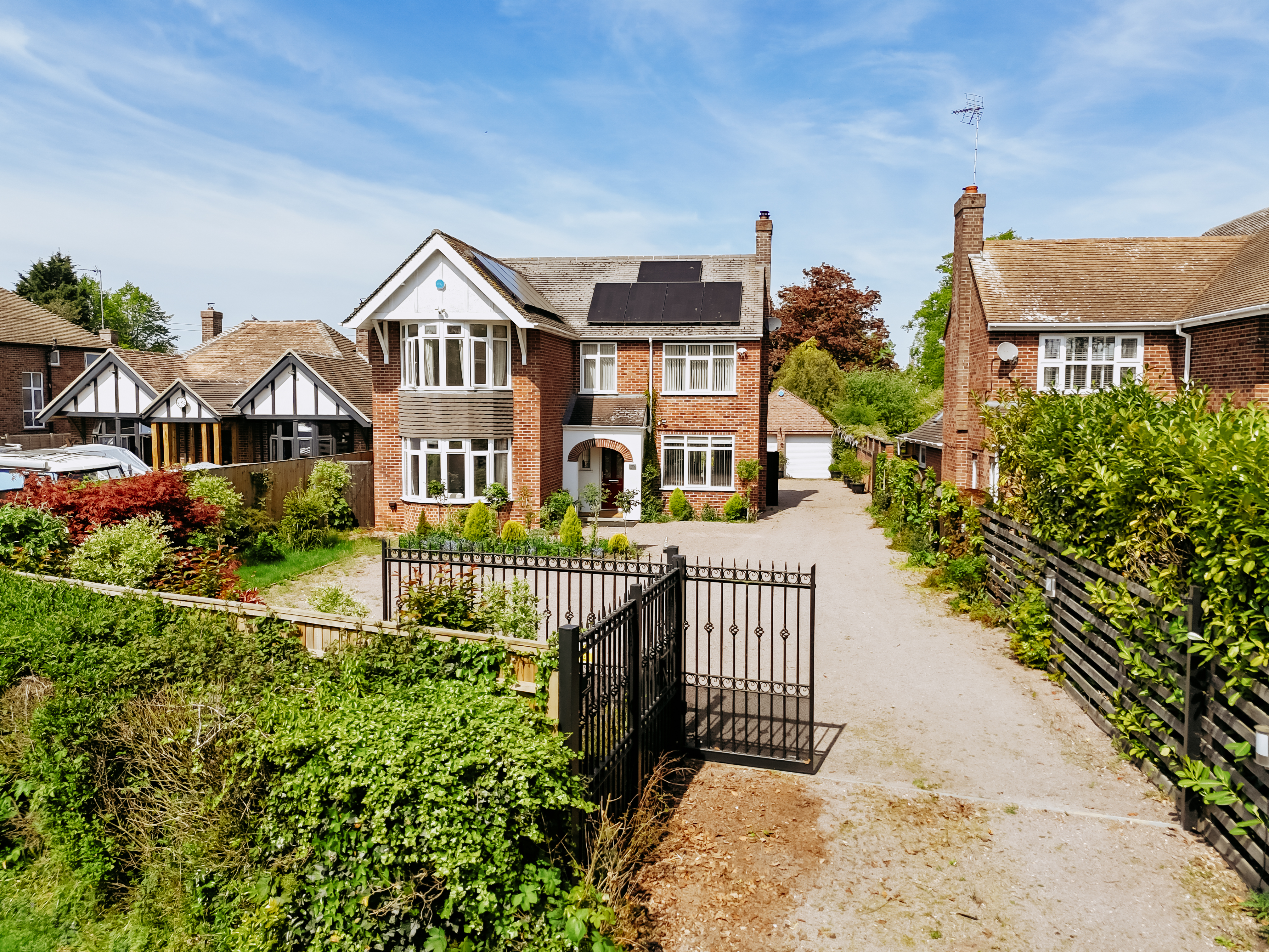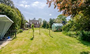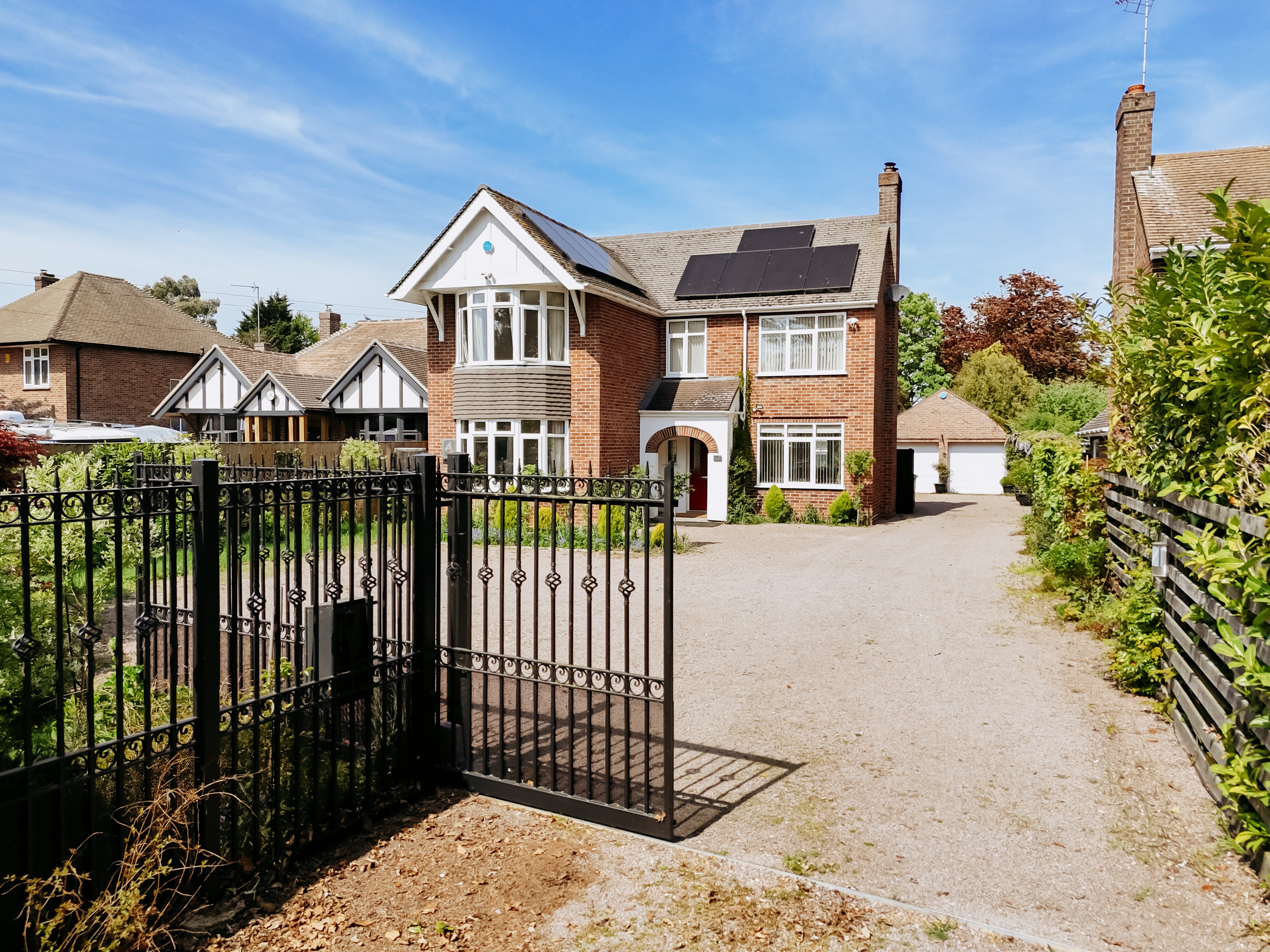 The property is approached via electronically operated gates opening onto a large hard standing driveway for multiple vehicles with access to the rear garden. The total plot measures 0.31 acres extending to approximately 53 metres / 173 ft long with a large seating area, lawned main garden, flower and shrub borders as well as a greenhouse and summer house. A lovely garden, perfect for children to play, offering a fair degree of privacy. The property is fully alarmed, covered by CCTV, security lighting and entry is via intercom and remote controls.
