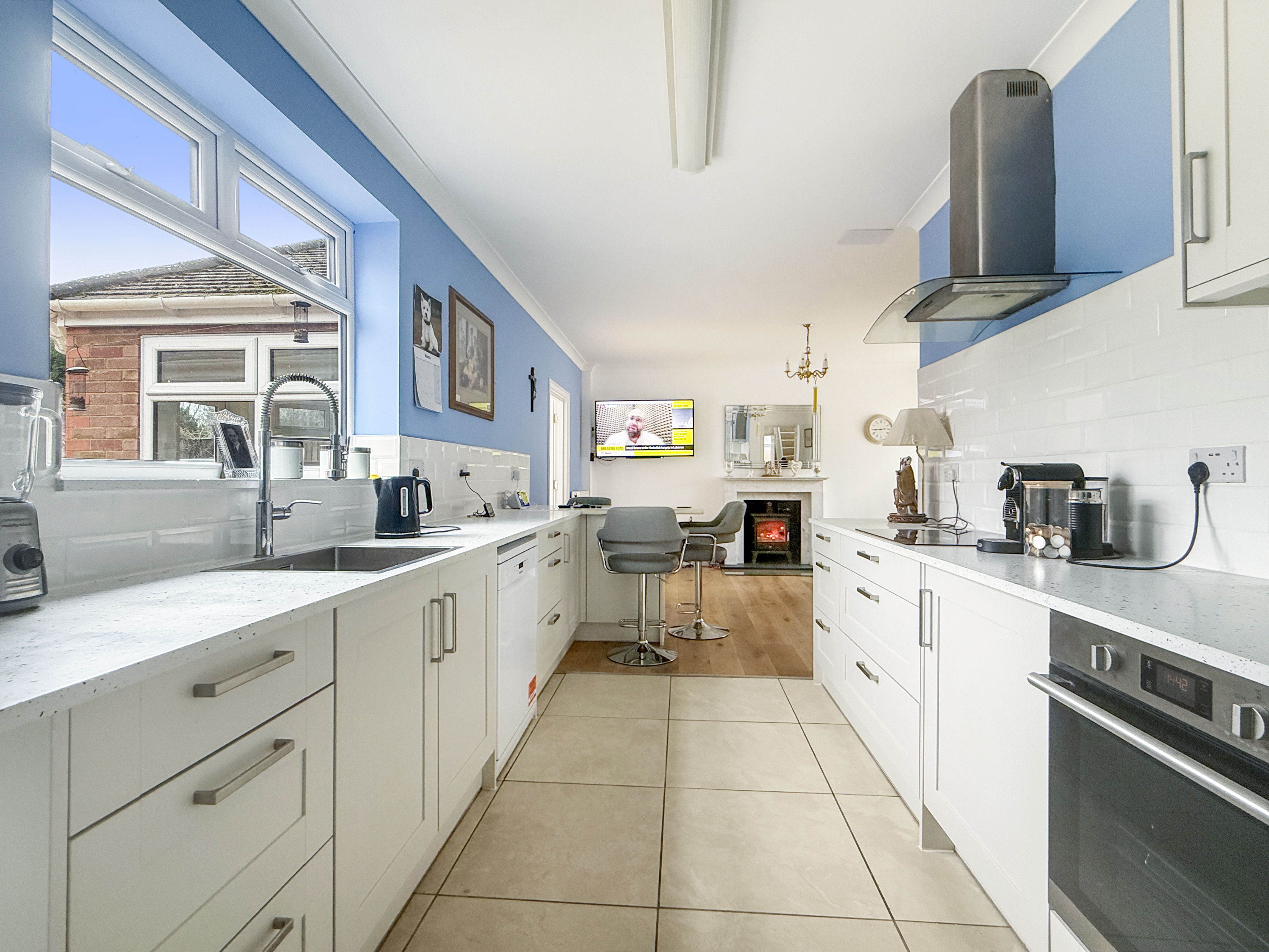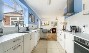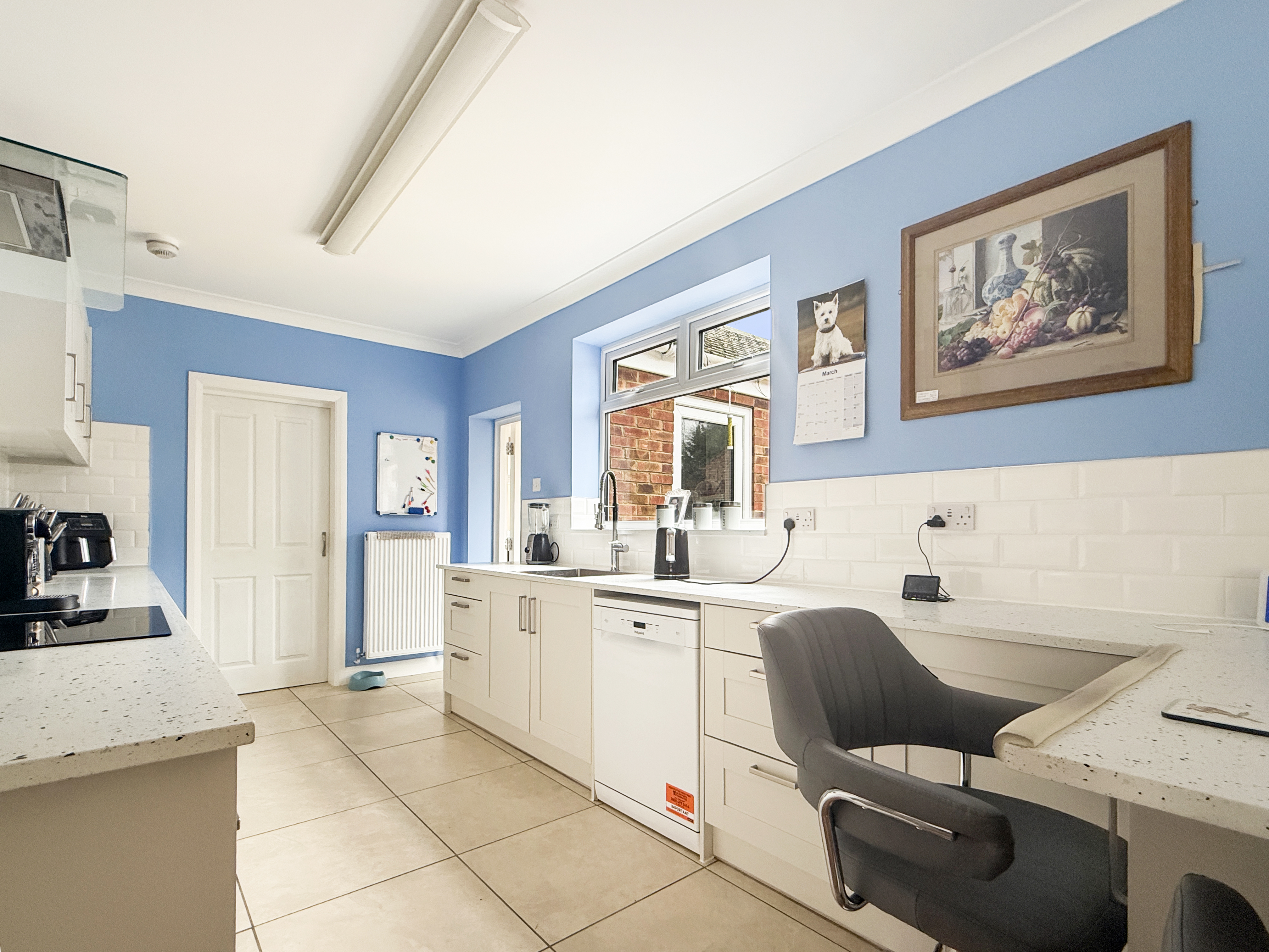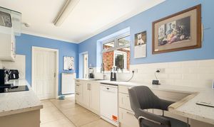 Open from the dining / family room, the kitchen is fitted with a range of cupboard units and worktop space with a twin oven, induction hob with extractor over, sink unit, plumbing for a dishwasher and space for a fridge / freezer. There is a large window to the rear and a pantry cupboard with plenty of shelving.