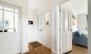 A composite door brings you into a grand hallway with stairs rising to the first floor and plenty of space for coats and shoes.