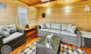 Versatile summer house located in the rear garden, suitable for relaxing, hobbies or a home office.