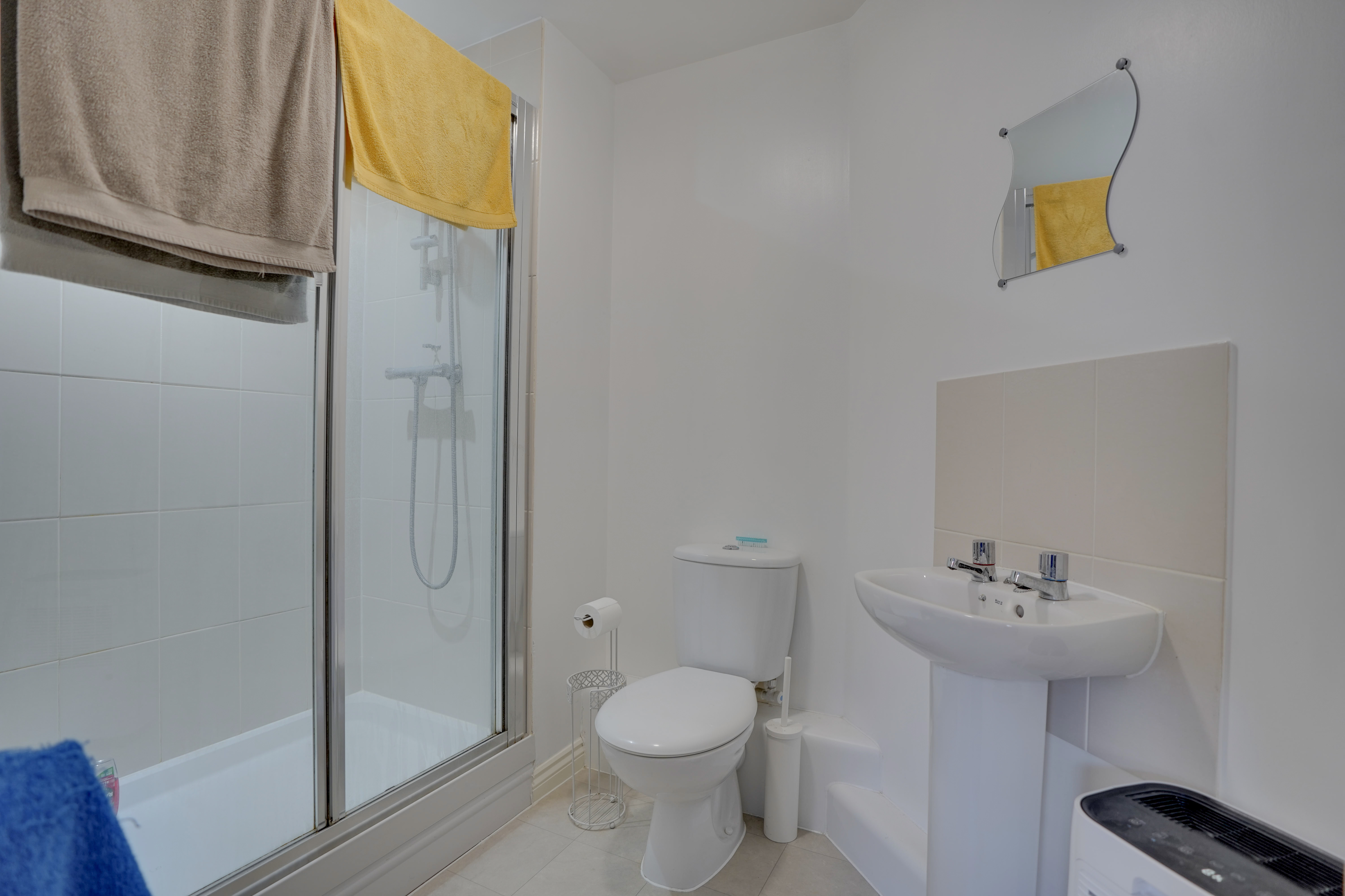 The accommodation includes two double bedrooms—one of which is a master with en-suite shower room—a contemporary family bathroom, and a bright open-plan living and dining area with a fitted kitchen. Well presented and practical throughout, it is ideally suited for both owner-occupiers and those seeking a strong, ready-made rental investment.
