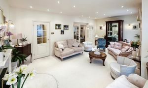 Upon entry, a spacious porch leads to an inviting inner hallway, setting the tone for the home's warm embrace. It unveils a host of convenient amenities, including a guest WC and cloakroom, complemented by two distinct lounges – one designed for casual TV enjoyment and the other as a formal lounge adjacent to the dining area. The open-plan kitchen, ideal for family gatherings, extends gracefully to a charming patio that overlooks a meticulously landscaped lawn garden. A double detached garage adds a practical touch to this already exceptional property.