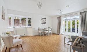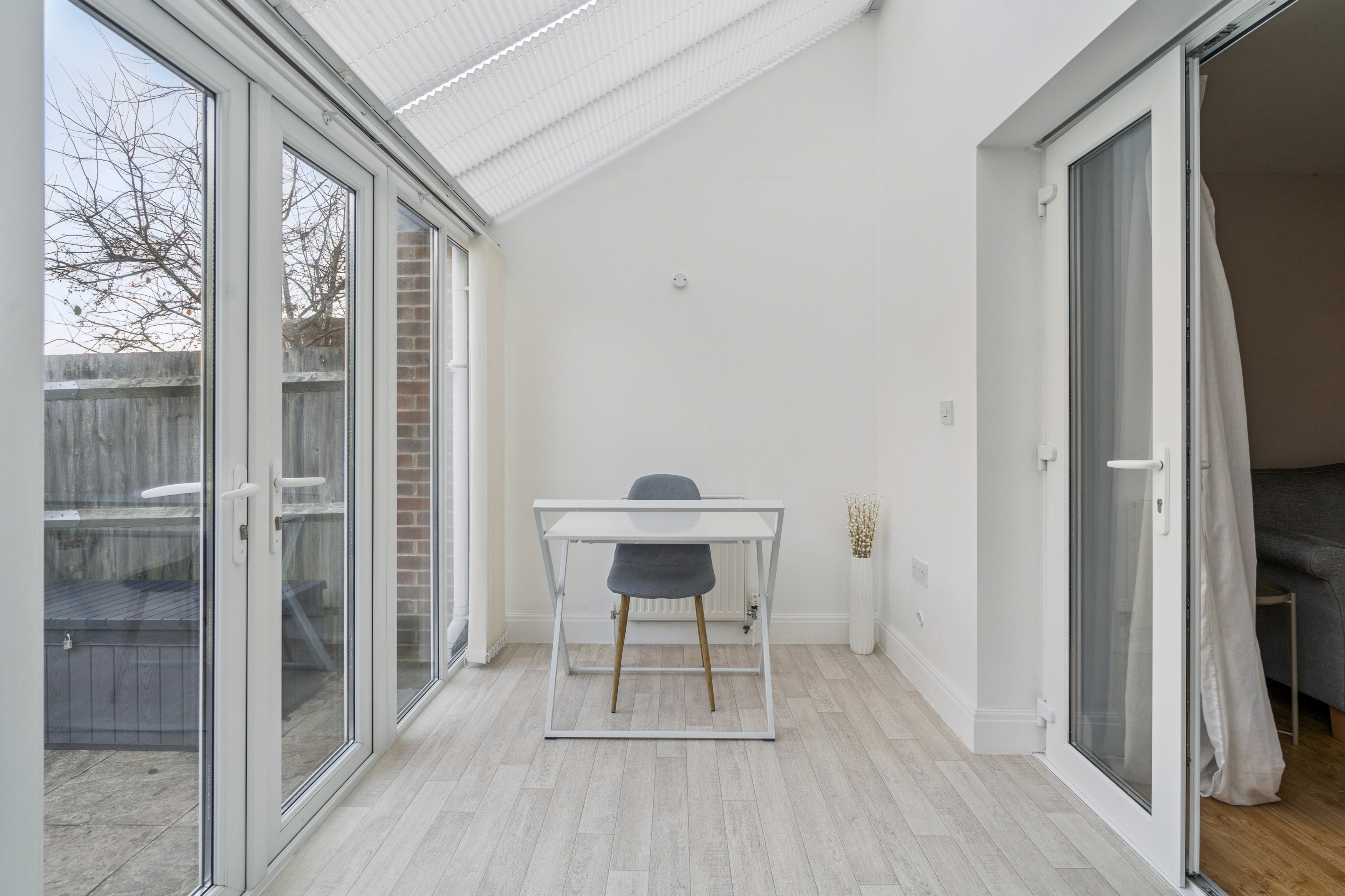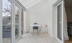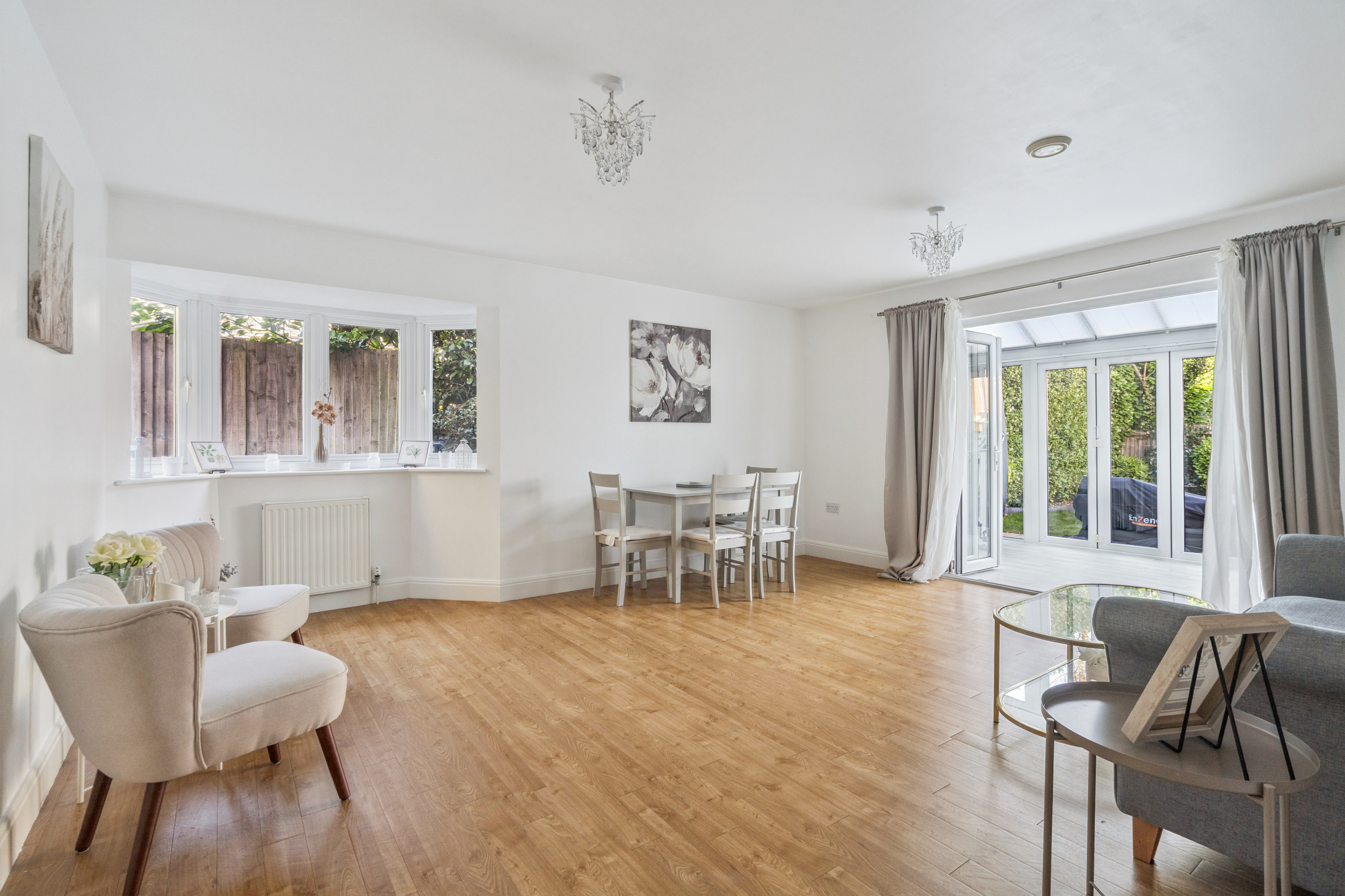 The spacious living and dining area is a wonderfully light, double-aspect room with an attractive bay window to the side and bi-fold doors opening into the adjacent conservatory. Generous in size, it offers excellent flexibility for both living and dining furniture, creating a perfect space for everyday living and entertaining. The conservatory serves as an additional reception room, perfect for enjoying the sunshine. It also provides a versatile extra seating area with further bi-fold doors offering direct access to the garden.