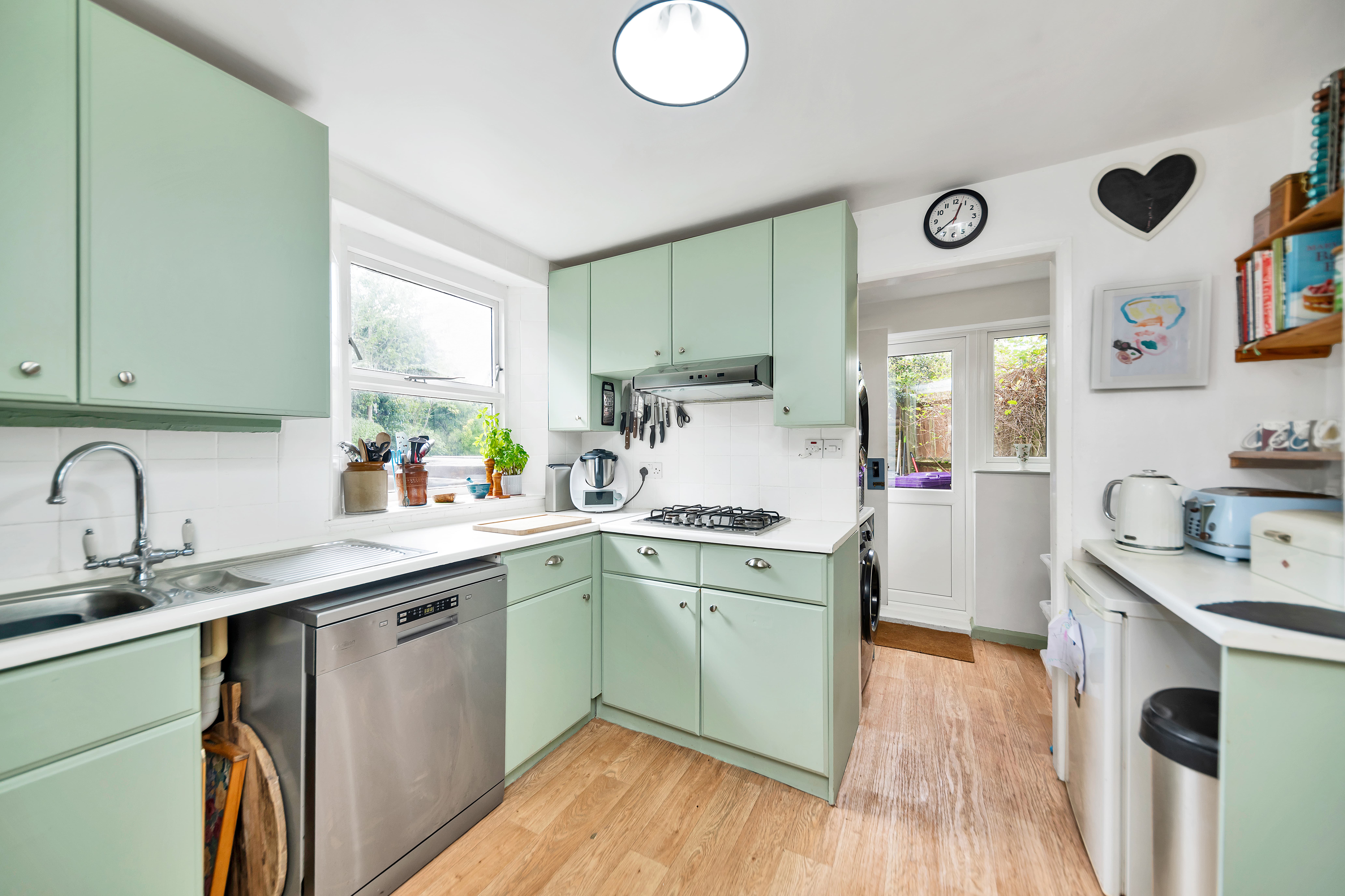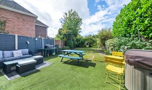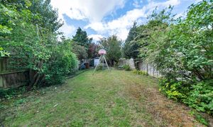 Outside, to the rear, the south west facing garden is an excellent size, fully enclosed by fencing and offering a wonderfully private space to sit and relax in the sunshine. It is laid mainly to lawn, with further artificial lawn just by the house, offering plenty of space for garden furniture, enjoying family meals and entertaining guests. There are well-maintained borders and beds, full of plants, flowers, trees and shrubs, access to a large shed, and lots of scope for future owners to put their own stamp on things or extend if desired, subject to the correct planning permissions.