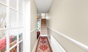 This lovely Victorian property enjoys a pleasant and tidy frontage, a front garden with cottage plants and a picket fence, plenty of space for pots, and gated side access to the rear. Upon stepping inside, the entrance hallway is bright and welcoming, neutral decor, pendant lighting, stairs to the first floor, doors through to the downstairs living space, and stairs leading down to a cellar which is being used as an office space.