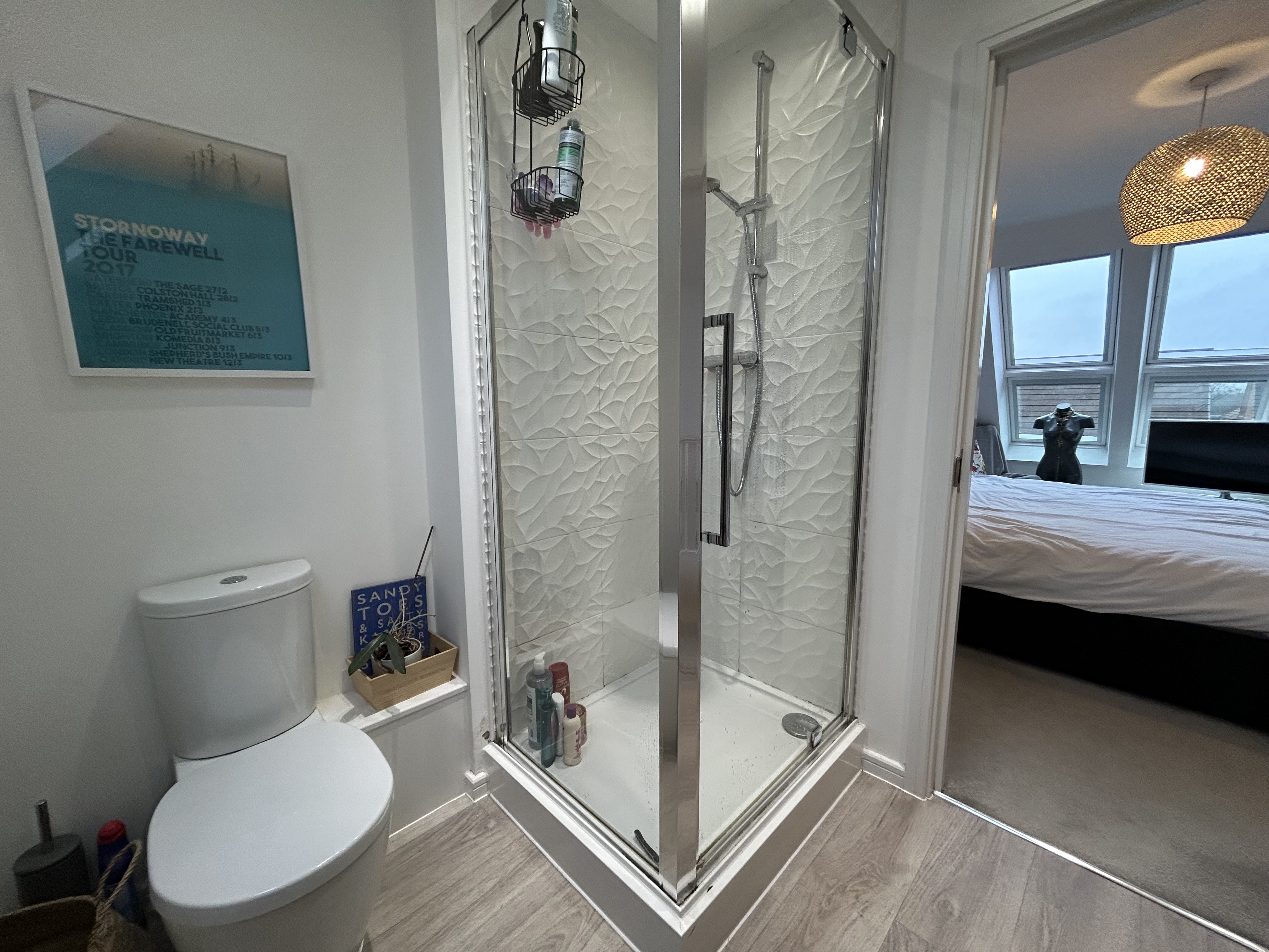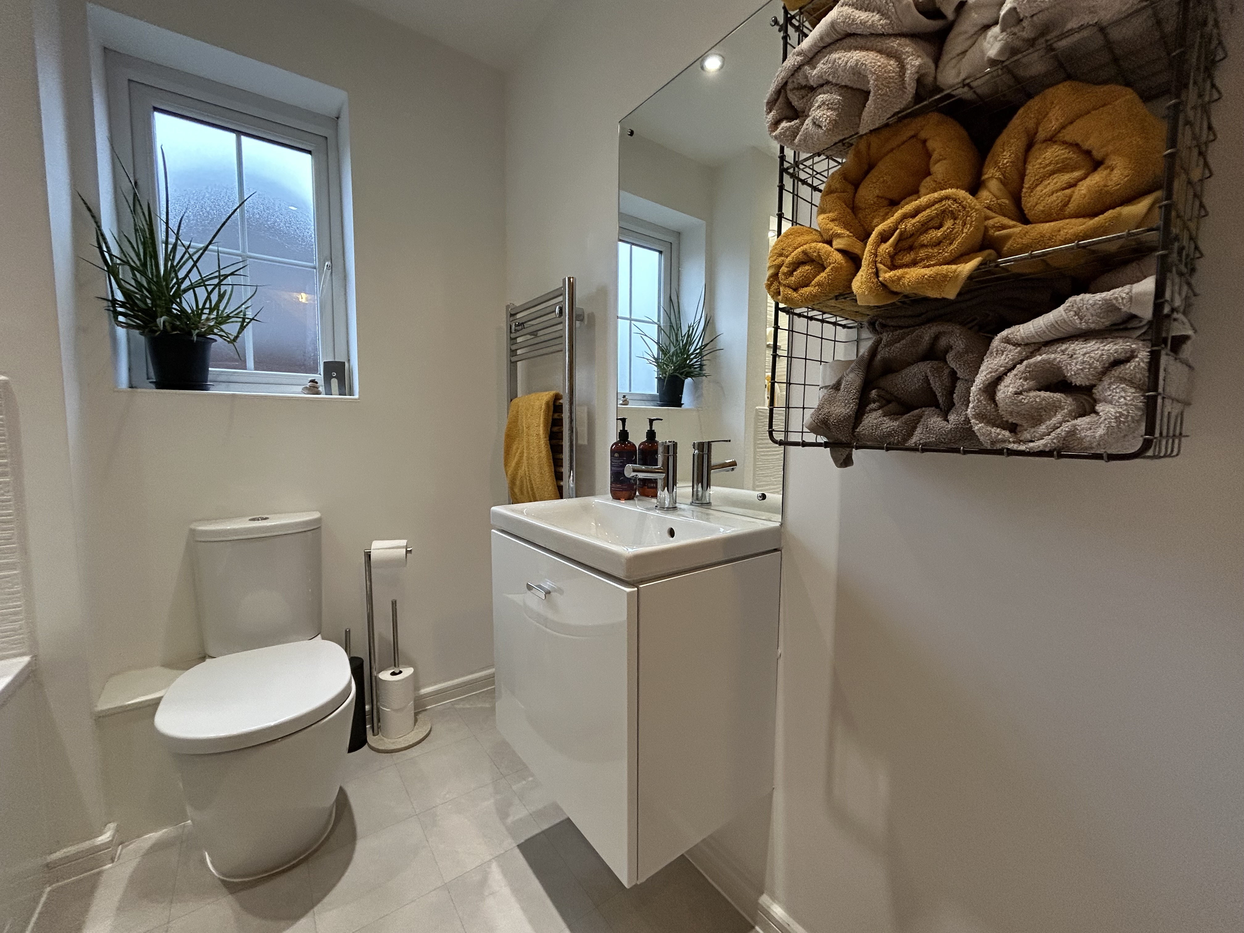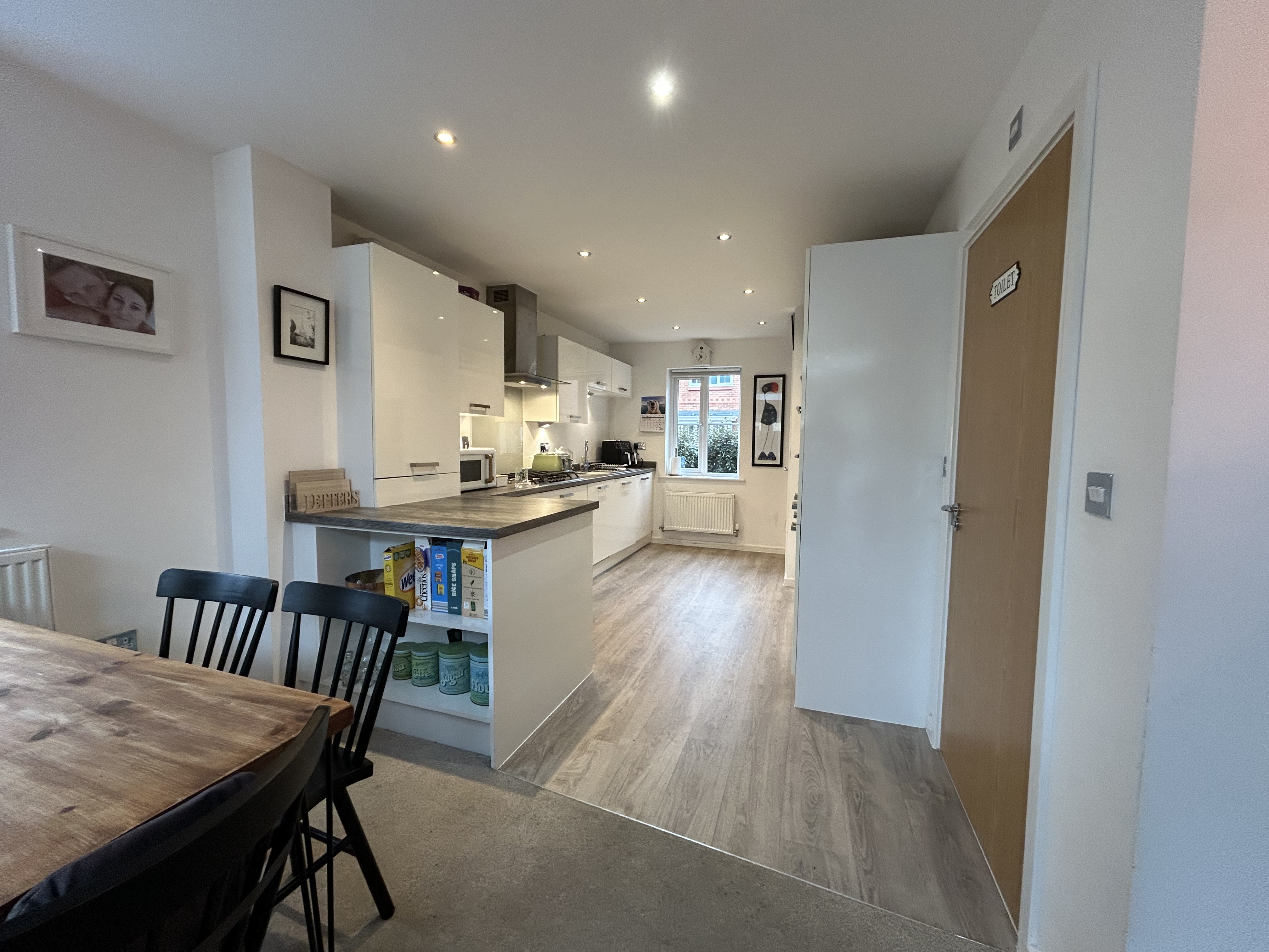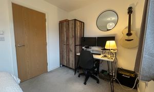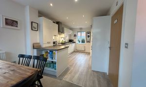 The property welcomes you with an open plan kitchen, lounge, and dining area, off the entrance hallway, designed to provide a versatile and sociable living space for families and professionals alike. Upstairs, there are three bedrooms, including a master bedroom on the second floor with ample space for storage, as well as an en-suite bathroom.