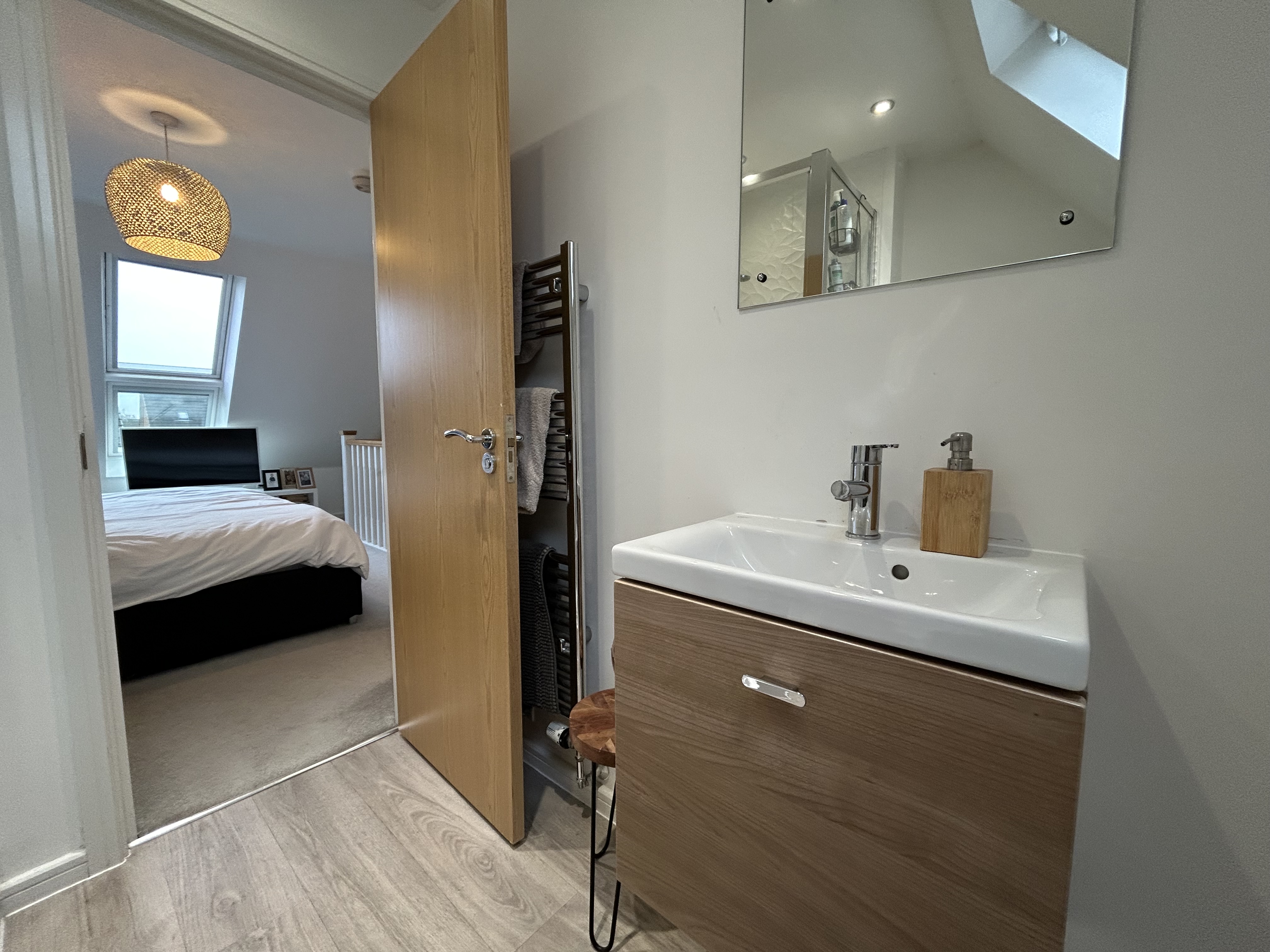 Large Skylights. Integrated wardrobes. Large double bedroom. Internal door through to: