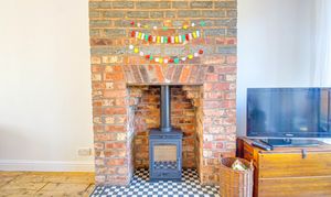 - Exposed Brick Fireplace to Lounge with Inset Log Burner