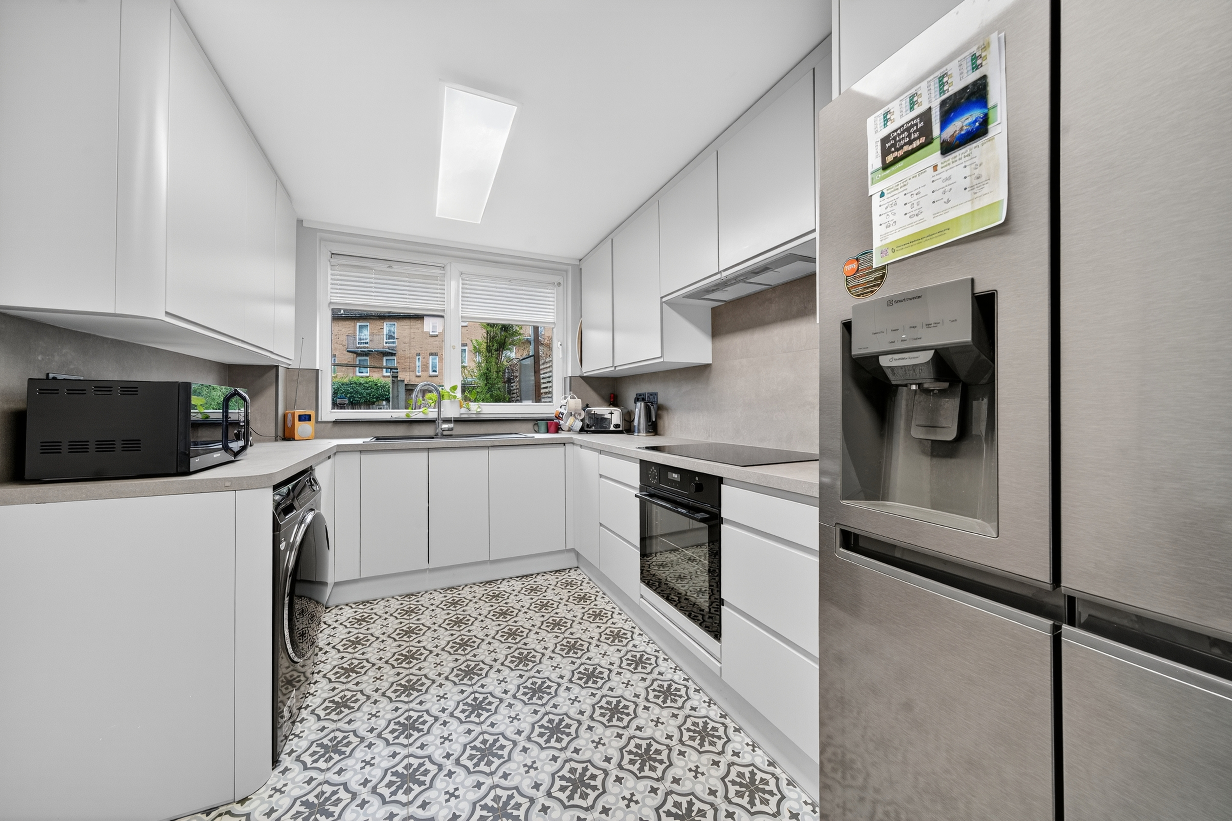 Cosy 3 bedroom house spread over three floors, in excellent condition with modern kitchen and bathrooms. Clever built-in storage including under-stairs pop out drawers and a storage cupboard on every floor keeps everything tidy.