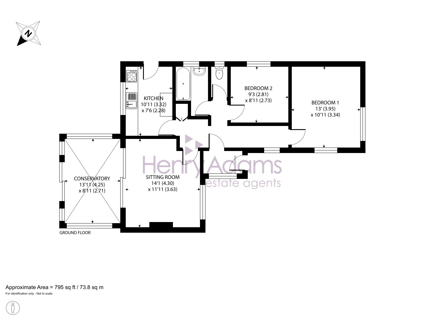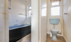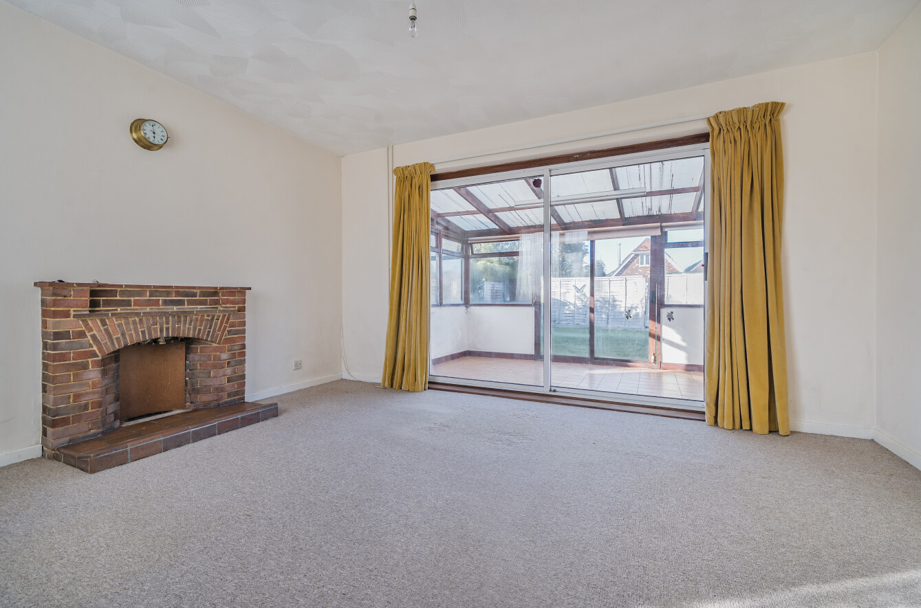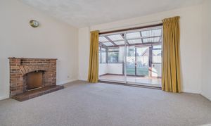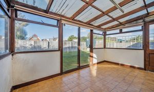 Inside, the accommodation includes a galley-style kitchen with space for freestanding appliances, a bright living room with a feature fireplace, and a large conservatory running along the back of the property, making the most of the garden outlook. There are two well-proportioned, twin-aspect bedrooms, a family bathroom and a separate WC.