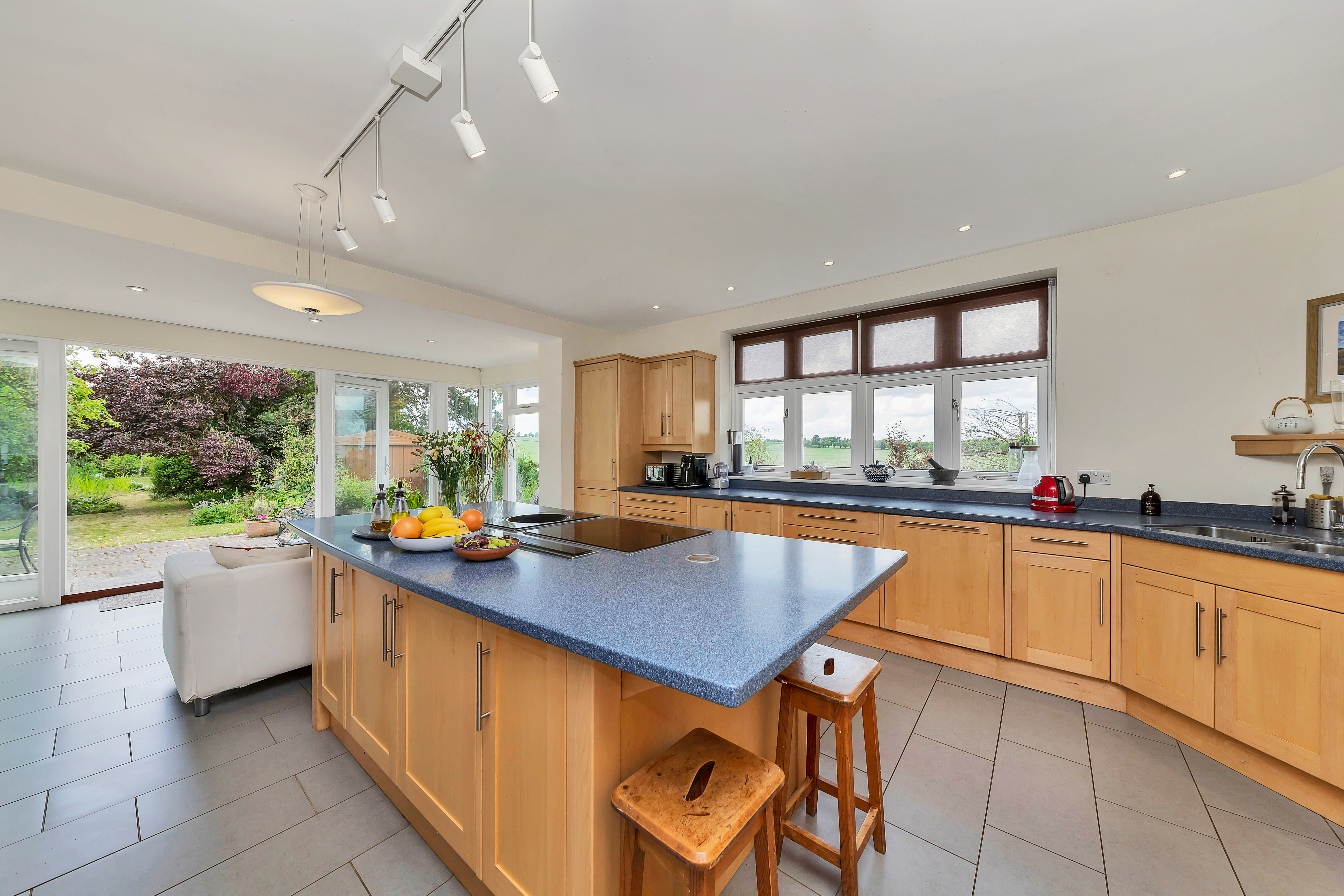 Outside, to the rear, the gardens are equally as stunning as the interior of the property, surrounded by countryside, with glorious views and multiple areas of interest. The garden is laid mainly to lawn, with an attractive paved patio space just by the house, offering both shaded and sun-filled areas to place garden furniture, enjoy family meals al fresco and entertain guests. There is a myriad of mature trees filling this wonderful plot, nestled between established borders of plants, flowers and shrubs, which provide colour all year round, together with pond again with its own paved seating area. Moving down towards the bottom of the garden, there are further paved areas to sit, a large fully aquatic plant-stocked pond, a significant vegetable patch with raised beds, fruit trees and walk-in fruit cage, and access to a greenhouse and sheds. Clearly the garden has the potential to support many activities and whilst it is currently established with a part dedicated to home growing, this part could easily be changed to accommodate perhaps a paddock, or swimming pool.
